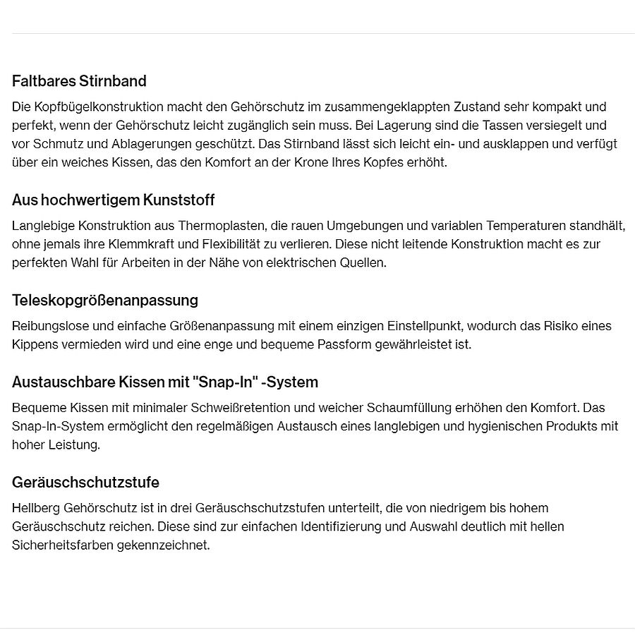 Der Gehörschutz von Hellberg Safety steht für eine herausragende akustische Leistung, die darauf abzielt, das Gehör in lauten Arbeitsumgebungen effektiv zu schützen, ohne den Nutzer von seiner Umgebung zu isolieren. Die Produktpalette umfasst sowohl passive als auch elektronische Gehörschützer, die sich durch ihre Anpassungsfähigkeit und Komfort auszeichnen. Elektronische Modelle bieten die Möglichkeit, die Lautstärke der Umgebungsgeräusche zu regulieren, sodass Kommunikation möglich bleibt, während schädliche Lärmpegel effektiv reduziert werden. Hellberg Safety Gehörschützer sind so gestaltet, dass sie mit anderen Schutzausrüstungen, wie Helmen und Schutzbrillen, kompatibel sind und somit eine umfassende Schutzlösung bieten.