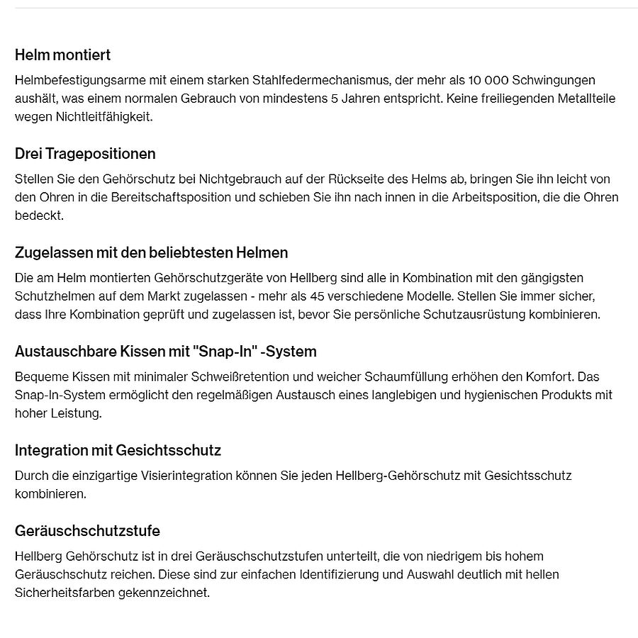 Produktinformationen "42003 Hellberg Gehörschutz Secure 3 Helmmontage"