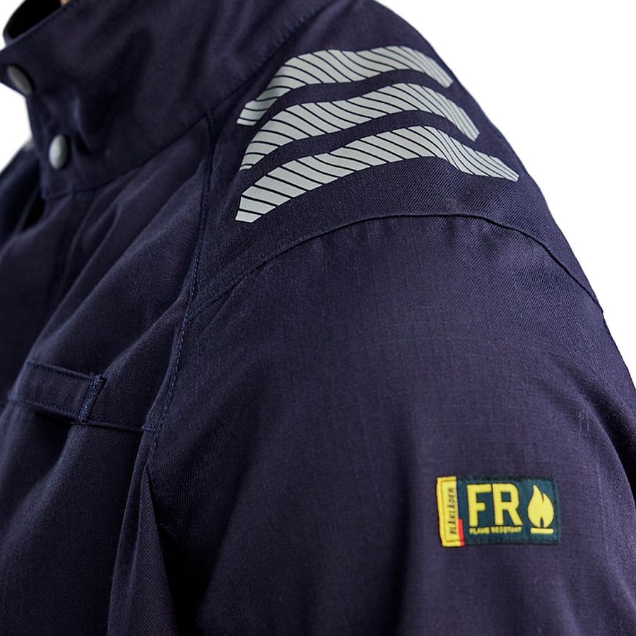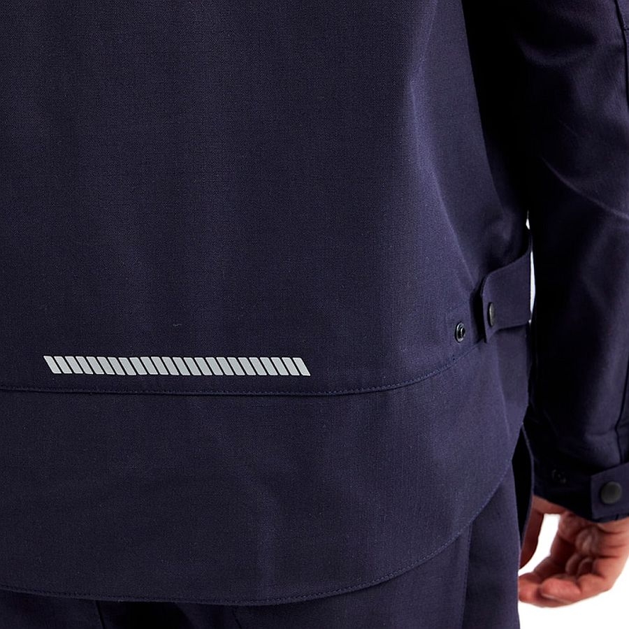Die Blåkläder Jacke Inhärent 4407-1512 ist eine hochwertige, metallfreie Industriejacke aus weichem, strapazierfähigem Material, das öl-, schmutz- und wasserabweisend ist. Sie bietet zertifizierten Schutz vor Hitze, Flammen und elektrostatischer Aufladung. Die Jacke ist mit reflektierenden Details, verstellbaren Ärmelbündchen und einem hohen Kragen für zusätzlichen Schutz ausgestattet. Zudem verfügt sie über praktische Taschen, Schlaufen für technische Geräte und einen verlängerten Rücken. Sie ist für bis zu 50 Waschgänge in der Industriewäsche zugelassen und erfüllt verschiedene europäische Sicherheitsnormen.