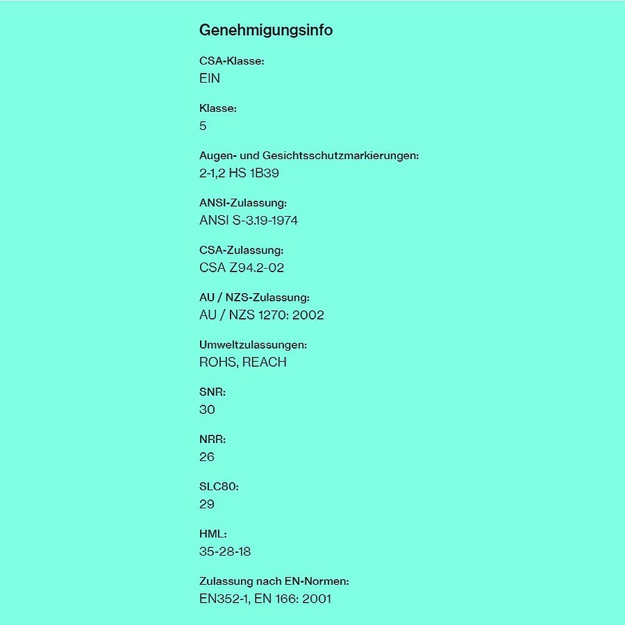 - Zulassung nach EN-Normen: EN352-1, EN 166: 2001