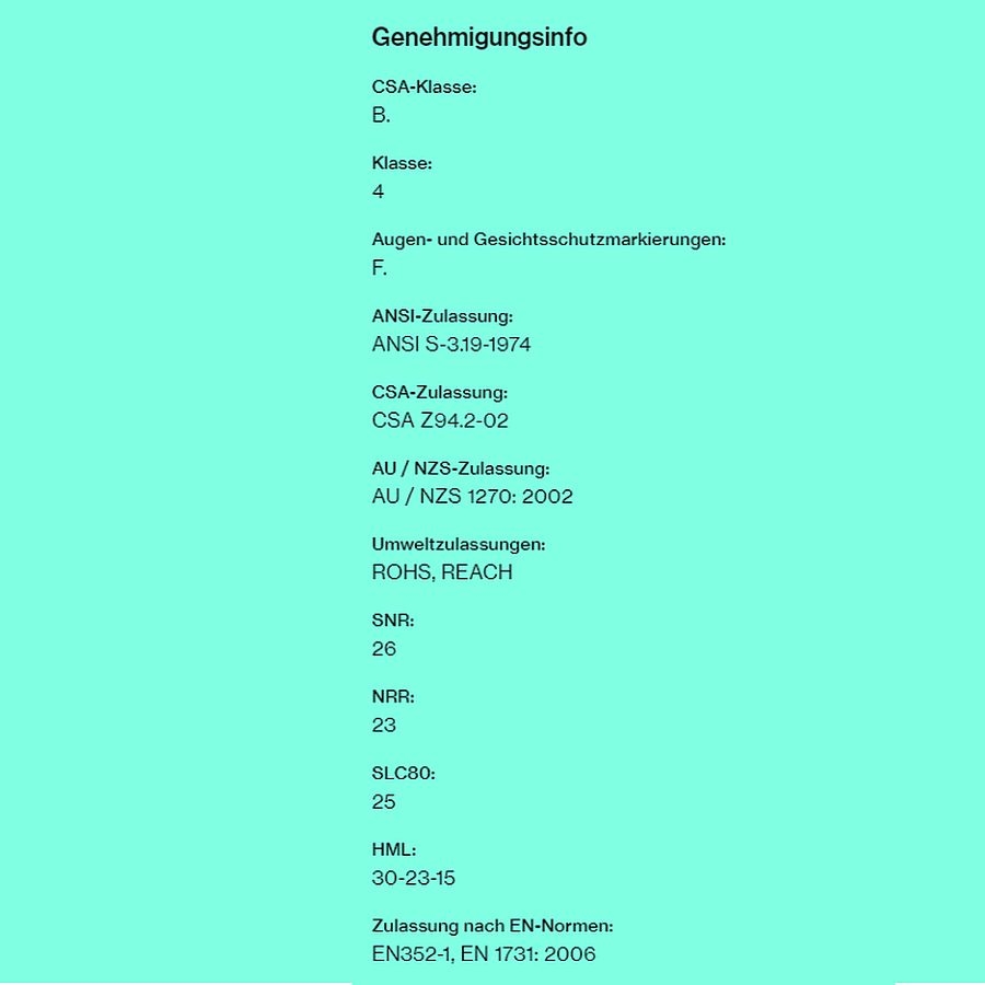 - Zertifizierung nach EN352-1, EN 1731: 2006