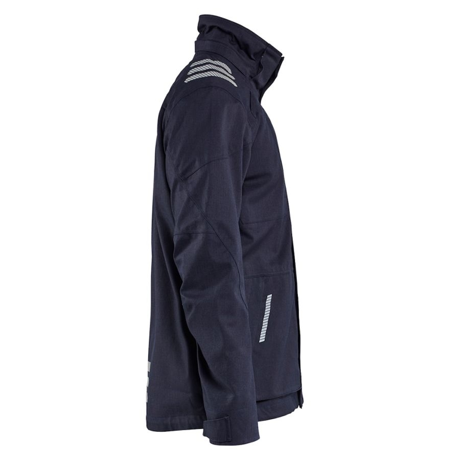 Die Blåkläder Shell Jacke Inhärent (Artikelnummer 44461534) ist eine technisch hochwertige, leicht wattierte Arbeitsjacke für alle Jahreszeiten. Sie wurde speziell für Einsatzbereiche entwickelt, die hohen Anforderungen an Sicherheits‑ und Wetterschutz stellen – etwa in der Öl‑ und Gasindustrie, petrochemischen Anlagen oder im Energiesektor. Dank ihres inhärent flammhemmenden und metallfreien Materials reduziert sie das Entzündungsrisiko effektiv und erfüllt alle Vorgaben der ATEX‑Richtlinie. Die Jacke überzeugt durch einen wind‑ und wasserdichten, atmungsaktiven Ripstop‑Stoff mit öl‑ und schmutzabweisender Oberfläche, der auch bei wechselhaften Wetterbedingungen zuverlässig schützt. Reflexdetails sorgen für bessere Sichtbarkeit in dunklen oder gefährlichen Umgebungen. Praktische Ausstattungsmerkmale wie ein hoher Kragen, ein verdeckter Zwei‑Wege‑Kunststoff‑Reißverschluss, ein verlängerter Rücken und ein verstellbarer Bund mit Kordelzug runden das durchdachte Design ab. Besonders praktisch: Die Jacke verfügt über Schlaufen zur Befestigung von Messgeräten (z. B. Gas‑ oder Sauerstoffdetektoren sowie Mikrofone) und ist vorbereitet für eine separat erhältliche Kapuze (Artikel 2164) – ideal für wechselnde Arbeitsanforderungen.
