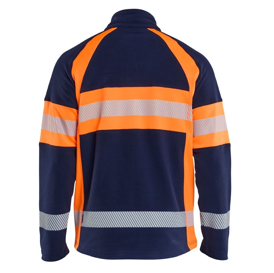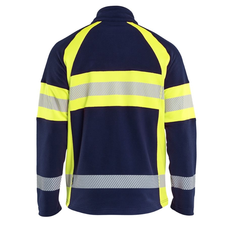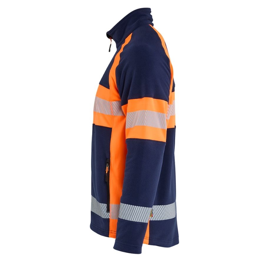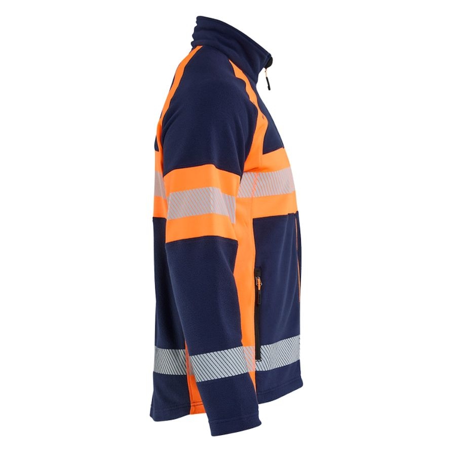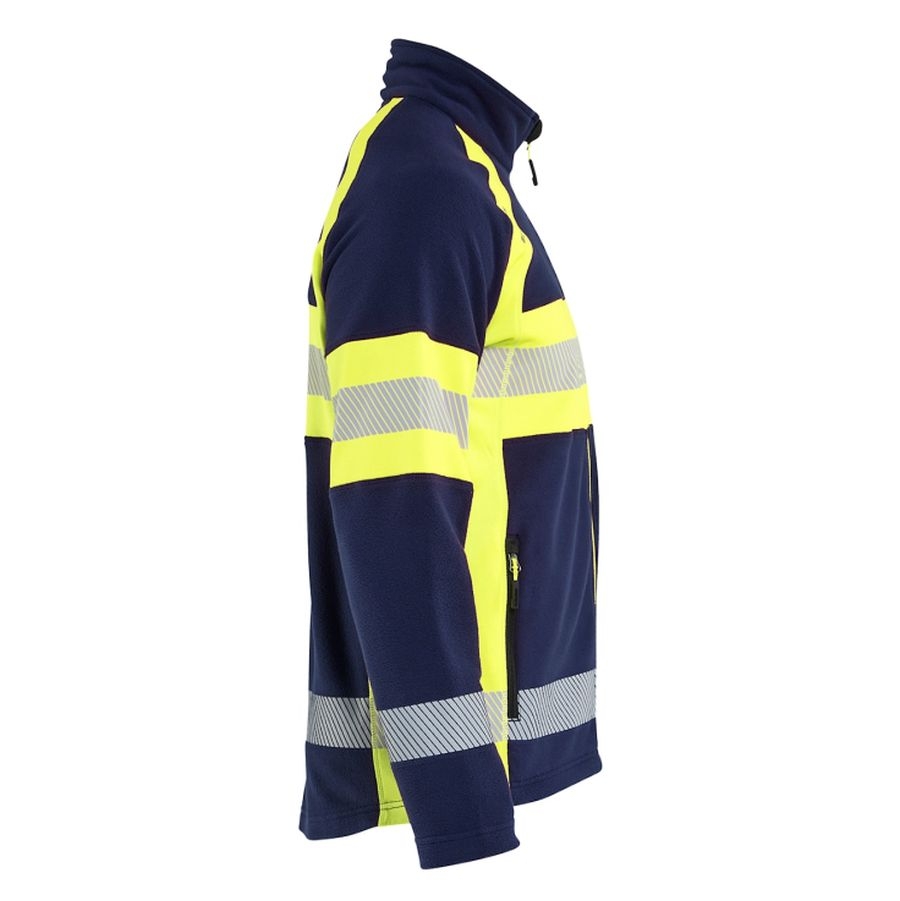 Die Blåkläder Microfleece Jacke 4713 1010 ist die ideale Wahl, wenn du eine leichte, wärmende Schicht brauchst, die dich im Arbeitsalltag nicht einschränkt. Das Microfleece ist pillingfrei (Antipilling) und beidseitig gebürstet – dadurch fühlt sich die Jacke besonders weich an und bleibt auch bei regelmäßigem Tragen lange gepflegt. Ob als eigenständige Jacke in der Übergangszeit oder als zweite Lage (Midlayer) unter einer wetterfesten Außenjacke: Die Blåkläder Microfleece Jacke 4713 1010 liefert genau die Wärme, die du brauchst, ohne aufzutragen. Ein starkes Plus ist die Kombination aus Komfort und Sicherheit: High-Vis-Einsätze und breite, segmentierte (unterbrochene) Reflexstreifen verbessern die Sichtbarkeit genau dann, wenn es darauf ankommt – z. B. auf dem Betriebshof, an Verkehrswegen oder bei schlechten Lichtverhältnissen. Die Blåkläder Microfleece Jacke 4713 1010 ist dafür nach EN ISO 20471, Klasse 1 zertifiziert (Zertifizierungsgruppe D) und für 25 Wäschen ausgelegt. Auch bei den Details zeigt Blåkläder, worauf es im Job ankommt: Der hohe Kragen schützt vor Zugluft, der Kunststoff-Reißverschluss ist robust und alltagstauglich. In den Vordertaschen mit Reißverschluss ist Wichtiges sicher verstaut, zusätzlich gibt es eine Innentasche für Kleinteile. Der verlängerte Rücken sorgt für extra Komfort und Wärme – besonders beim Bücken, Heben oder Arbeiten über Kopf.