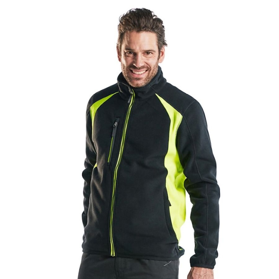 Die zweifarbige Jacke 4730 von Blakläder Workwear aus anti-pilling Fleece Material. Sie hat Funktionen wie zwei geräumige Vordertaschen mit Reißverschluss, einen verlängerten Rücken, Reißverschlüsse vorne und an der Brusttasche mit Reflexdetails.