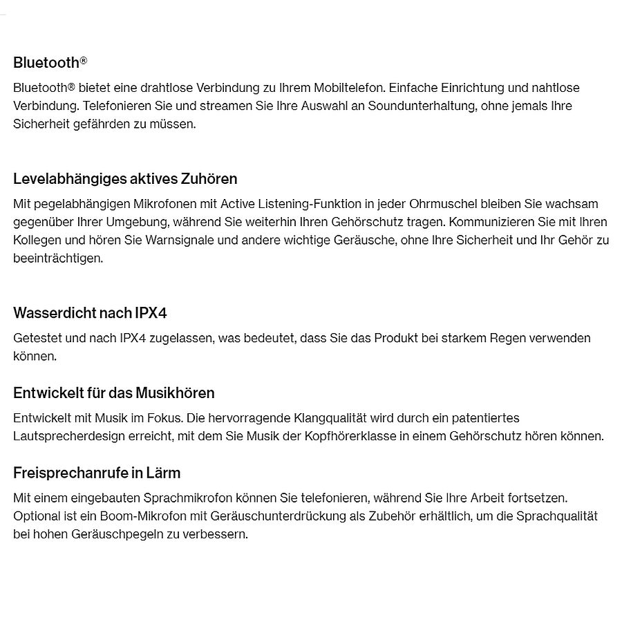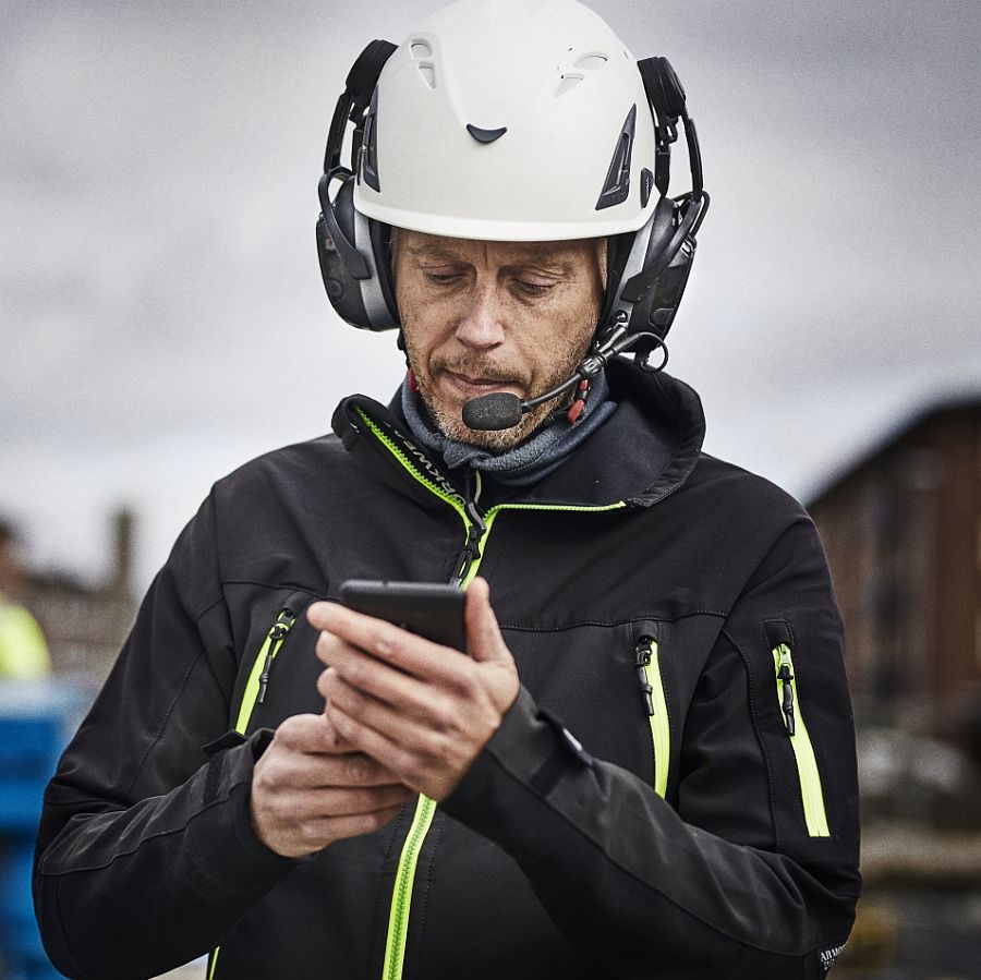 Gehörschutz mit Bluetooth für Musikstreaming. Xstream verbindet sich über Bluetooth mit Ihrem Telefon für drahtloses Musikstreaming und Telefonanrufe. Ihr Gehör ist geschützt, während Sie Ihre Lieblingsmusik mit ausgezeichneter Klangqualität hören können. Das eingebaute Sprachmikrofon ermöglicht Ihnen, Telefongespräche zu führen. Optional ist ein Bügelmikrofon erhältlich, das eine klarerer Sprachqualität in lauter Umgebung bietet. Mikrofone mit Mithörfunktion in beiden Kapseln sorgen für hervorragendes Richtungshören und ein natürliches Klangerlebnis. So sind Sie in der Lage, Gespräche zu führen und Warnsignale oder andere wichtige Informationen wahrzunehmen, ohne dass dabei der Schutz beeinträchtigt wird.