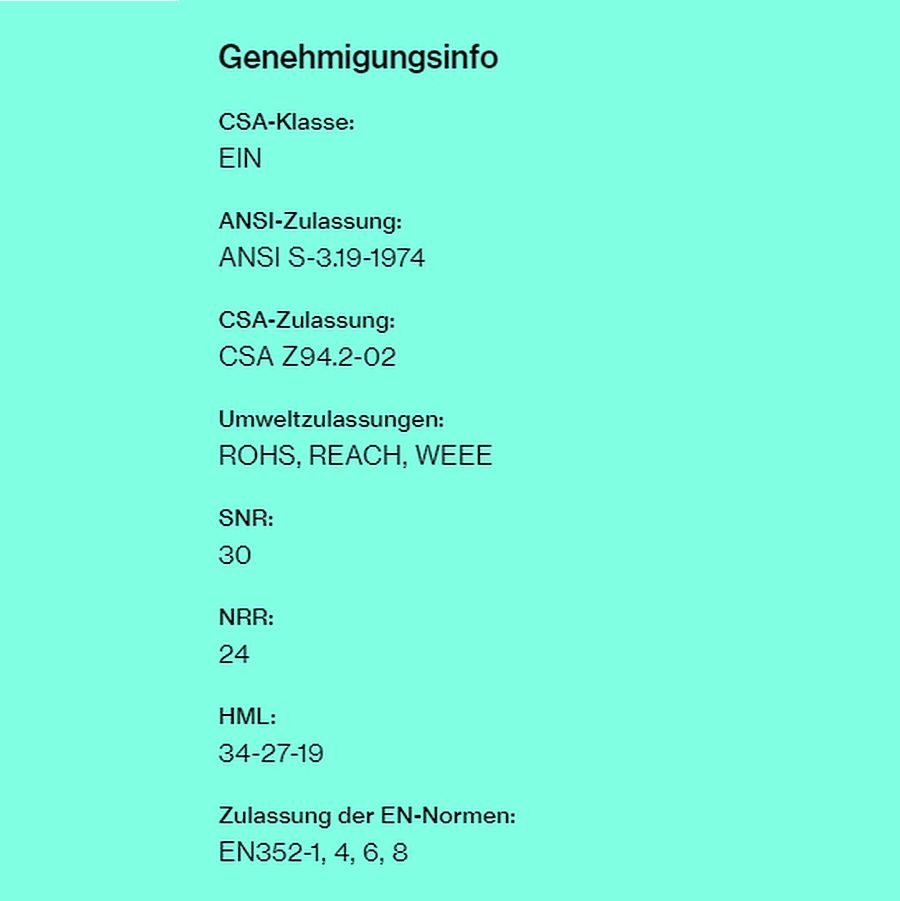 - Zertifizierung: EN352-1, 4, 6, 8