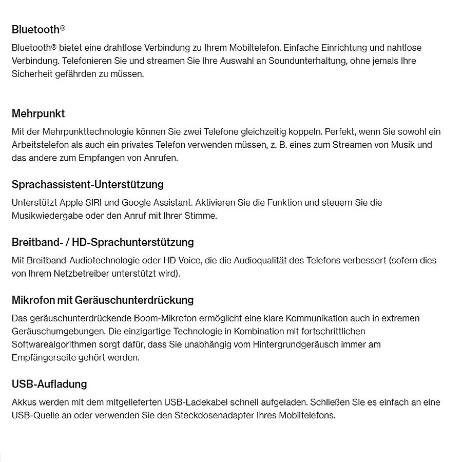 - Bluetooth® Multi-Point zur Verbindung von zwei Smartphones gleichzeitig.