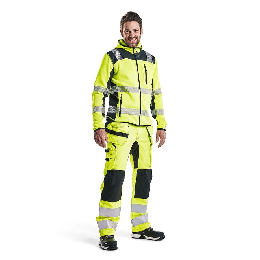 Die Strickjacke 4923 von Blakläder Workwear aus High Vis Material mit Kapuze in einem attraktiven Design und bequemer Qualität. Reflexstreifen für gute Atmungsaktivität und Elastizität. Die Jacke hat Reißverschlüsse und ist mit Softshell Material an den Schultern, den Ärmeln und am Rücken für eine bessere Lebensdauer verstärkt. Diese Jacke ist die Richtige bei der Arbeit und Außerhalb. Zertifiziert nach EN ISO 20471 Klasse 2.