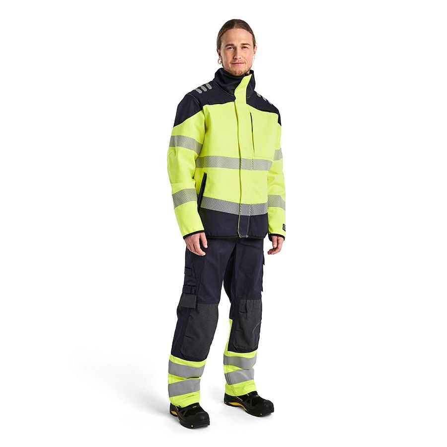 Die metall- und polyesterfreie Softshell Jacke 4948 in High Vis, die inhärent flammhemmend ist. Die wind- und wasserabweisende Jacke besteht aus einem Softshell-Material und verfügt über eine hervorragende Atmungsaktivität. Außerdem hat sie einen verlängerten Rücken, vorgeformte Ärmel und Bündchen an den Ärmelenden, die den ohnehin schon fantastischen Tragekomfort noch verbessern. Die Jacke ist mit zwei Schlaufen, zum Einhängen von Gas- und Sauerstoffmessgeräten, ausgestattet. Das macht die Softshell Jacke besonders nützlich für Arbeiten in z.B. petrochemischen Umgebungen oder in der Öl- und Gasindustrie. Sie ist zertifiziert nach EN 1149-5. EN 13034. EN ISO 20471. EN ISO 11611. EN ISO 11612. IEC 61482-2.