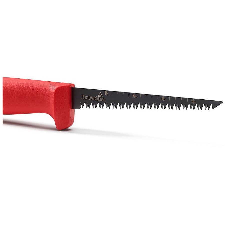 ine Stichsäge, die hauptsächlich zum Schneiden von Gipskartonplatten entwickelt wurde, aber auch als kleine vielseitige Säge im Garten oder im Wald verwendet werden kann. Die Klinge besteht aus 1,6 mm hochwertigem SK5-Stahl für erhöhte Stabilität und Präzision. Die Klinge ist 3-phasig geschliffen, um einen hohen Wirkungsgrad zu gewährleisten, ohne die umgebenden Materialien zu beschädigen. Die Klinge ist mit einer elektrophoretischen Rostschutzbeschichtung versehen, um Korrosion zu widerstehen. Die Säge ist mit einem ergonomischen Griff aus robustem PP-Material und einem Loch ausgestattet, durch das in der Höhe eine Sicherung angebracht werden kann. Die Säge wird mit einem robusten Holster für sicheren Gebrauch und mehr Mobilität geliefert.