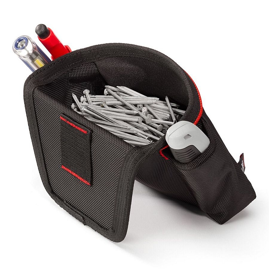 Durch ihre gepolsterte Lasche lässt sich die Tasche entweder schnell in der Gesäßtasche verstauen oder am Werkzeuggürtel befestigen, wodurch Sie maximale Flexibilität bei der Anwendung genießen. Das großzügige Hauptfach bietet ausreichend Platz für Nägel, Schrauben oder kleinere Werkzeuge, während zwei Seitentaschen für Ordnung sorgen und schnellen Zugriff auf häufig verwendete Utensilien ermöglichen.