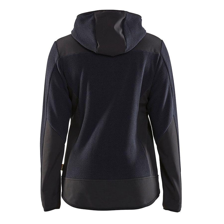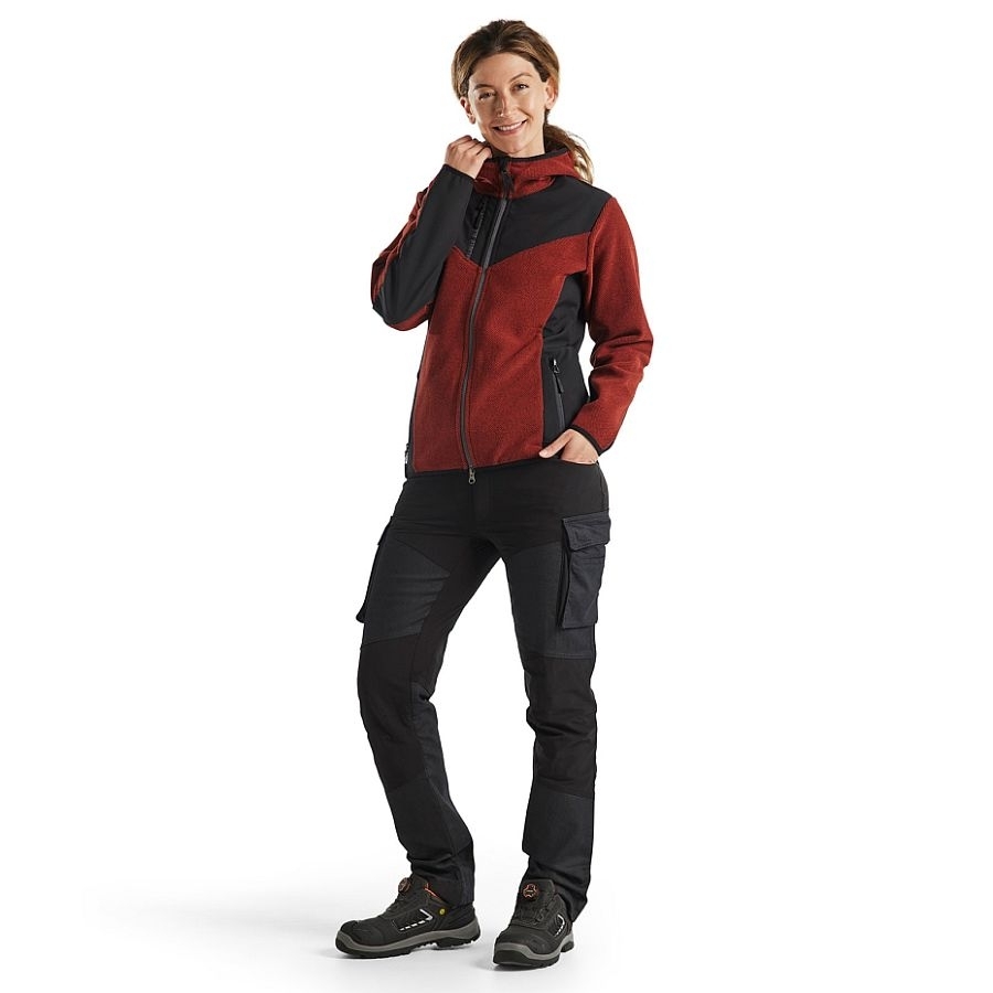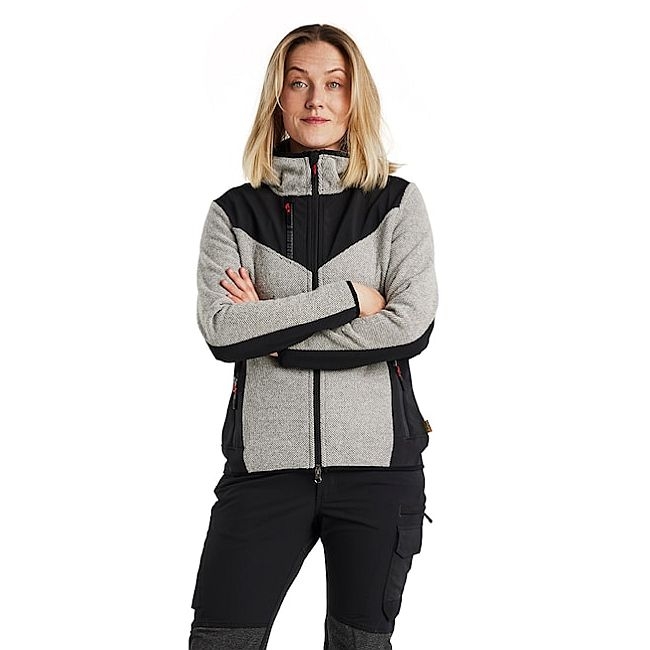 Eine Strickjacke mit Kapuze in modischem Design und unschlagbar bequemer Fleece-Qualität. Diese Jacke mit Zwei-Wege-Reißverschluss hat ein neues, einzigartiges Material, das am besten als dreidimensionaler Fleece beschrieben werden kann. Das gebürstete Material verleiht der Jacke ihr Aussehen mit dehnbarem und geschmeidigem Komfort und Wärme bei Bedarf. Die Jacke ist an den Armen, Schultern und am Rückenabschluss mit Softshell-Material verstärkt, um die Haltbarkeit zu erhöhen, und da sich unter den Armen kein Softshell-Material befindet, wird die Belüftung verbessert. 5941 hat ausgezeichnete Profilierungsflächen, eignet sich aber bei der Arbeit genauso gut wie in der Freizeit. Sie werden es garantiert genießen. Auch als Herrenmodell 5940 erhältlich.