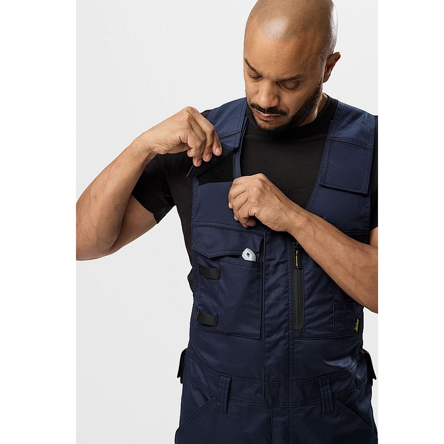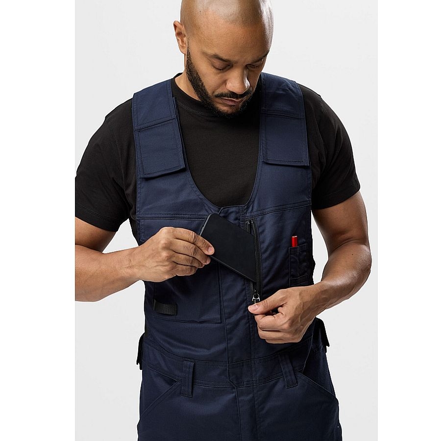 Die zertifizierte Knieschutzausstattung nach DIN EN 14404 (Typ 3) macht diese Arbeitshose zur idealen Wahl für alle, die oft auf den Knien arbeiten. Zudem überzeugt das Modell mit funktionalen Details wie Werkzeughaltern mit Klettverschluss, mehreren Brust-, Cargo- und Werkzeugtaschen sowie verstellbaren Trägern, die für einen sicheren Sitz sorgen – den ganzen Tag über.
