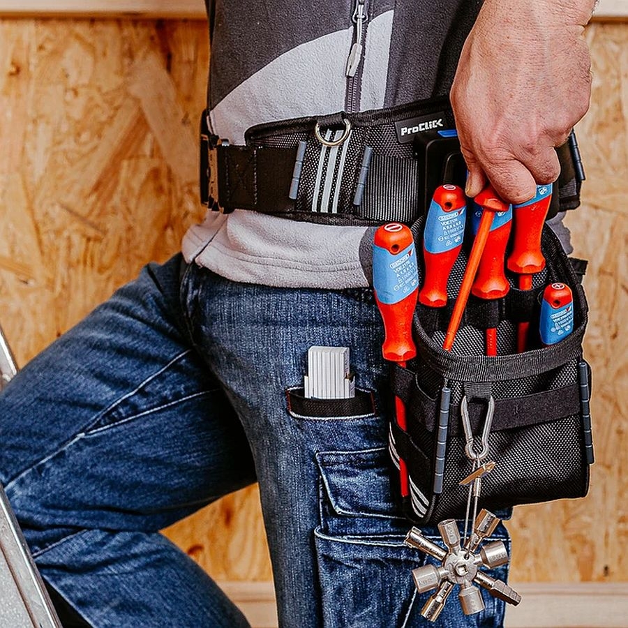 Der ProClick Tool Belt S ist vollständig kompatibel mit dem ProClick System. In Kombination mit dem ProClick Holder entsteht ein stabiles, klickbares Trägersystem für alle Werkzeuge und Taschen mit ClickUnit – einfach einklicken und loslegen, ganz ohne Gefummel.