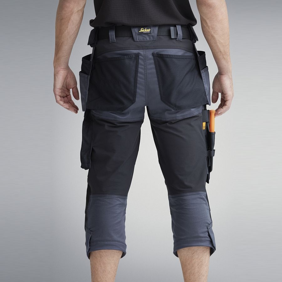 Stretch-Piratenhosen, die auf Arbeitskomfort im Alltag ausgelegt ist. Das Slim-Fit-Design sorgt für optimale Bewegungsfreiheit, die Cordura®- verstärkten Kniepolstertaschen sorgen für verbesserte Haltbarkeit und optimierten Schutz.
