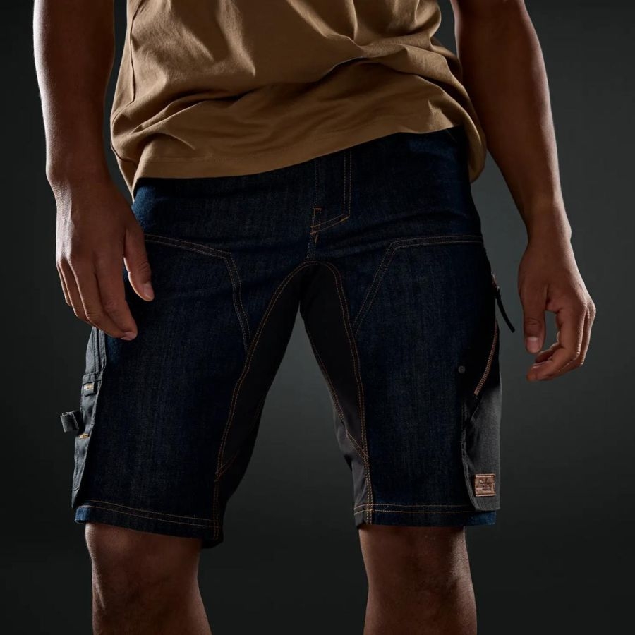 6156 FlexiWork Denim-Shorts – robuste, flexible Arbeitsshorts für warme Tage: Mit den Snickers Workwear 6156 FlexiWork Denim-Shorts (Artikelnummer 6156) bekommst du eine strapazierfähige Denim-Arbeitsshorts, die für aktive Einsätze gemacht ist – überall dort, wo du Bewegungsfreiheit, Komfort und smarte Werkzeugaufbewahrung brauchst. Das robuste Denim-Gewebe in einer leistungsstarken Baumwoll-Mischung wird durch CORDURA® verstärkt und hält damit auch anspruchsvollen Arbeitstagen zuverlässig stand. Gleichzeitig sorgen 4-Wege-Stretch-Einsätze im cleveren Body-Mapping-Design dafür, dass du dich bei knienden, bückenden oder über-Kopf Arbeiten frei bewegen kannst – ohne Zwicken oder Einschränkung. Gerade im Sommer oder bei warmen Temperaturen punkten die Snickers Workwear 6156 FlexiWork Denim-Shorts (Artikelnummer 6156) mit einem modernen, schlanken Look und durchdachter Funktion: Werkzeug ist nicht irgendwo verstaut, sondern genau da, wo du es brauchst. Besonders praktisch ist die Cargotasche mit Reißverschluss, die zusätzlich mit Stretch-CORDURA® verstärkt ist – ideal für alles, was sicher sitzen soll. Dazu kommt eine Zollstocktasche mit CORDURA®-Verstärkung inklusive Stiftfach und Messerhalter, damit die Essentials immer griffbereit bleiben. Werkzeughalter auf beiden Seiten runden das Tragesystem ab und machen die 6156 FlexiWork Denim-Shorts zu einem echten Profi-Teil für Handwerk, Montage und Baustelle. Auch beim Material zeigt die Snickers Workwear 6156 FlexiWork Denim-Shorts (Artikelnummer 6156) klare Kante: Hauptmaterial aus 82 % Baumwolle, 14 % CORDURA®-Polyamid, 3 % REPREVE®-Polyester und 1 % Elasthan (10,9 oz) – kombiniert mit einem Stretchmaterial aus Polyamid/Elasthan für spürbaren Komfort. Zusätzlich sind Taschenbereiche gezielt verstärkt (u. a. 100 % CORDURA®-Polyamid), damit stark beanspruchte Zonen länger halten. Und: Die Shorts sind nach OEKO-TEX® Standard 100 geprüft – ein Pluspunkt für hautfreundliche, schadstoffgeprüfte Textilien.