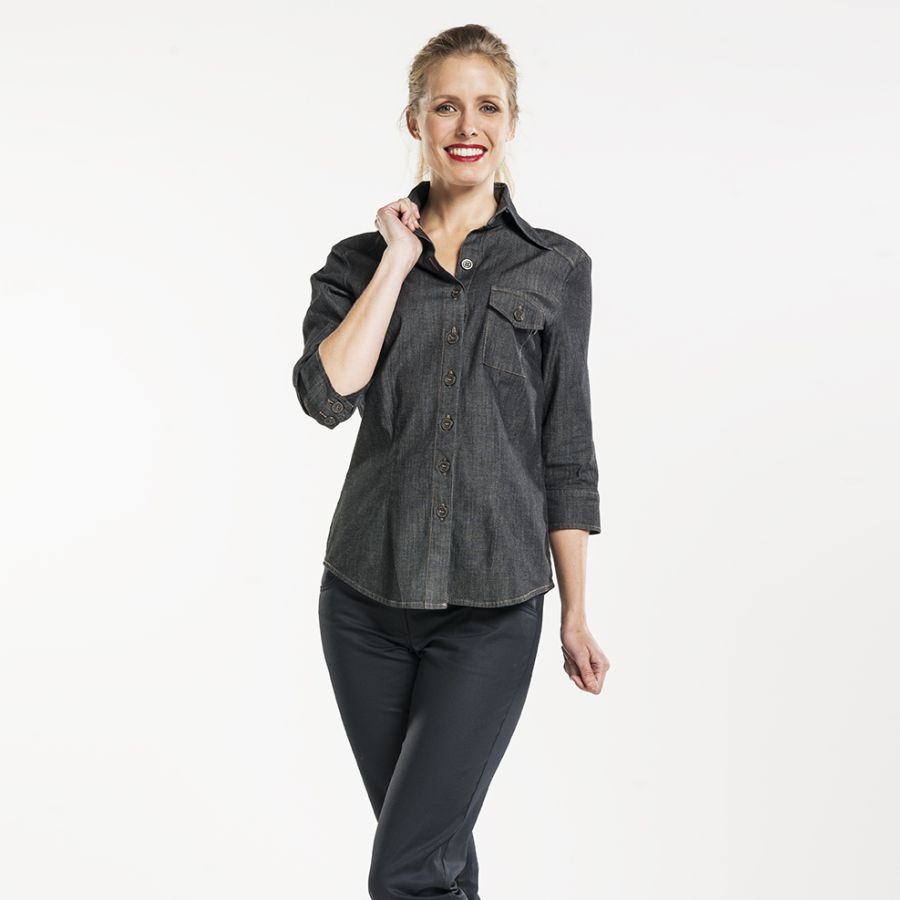 Die Pure Denim Kollektion zeigt Stärke und Charakter … Daher ist sie die perfekte Verschmelzung von Mode und Arbeitskleidung. Richtiger Denim lebt! Häufiges Waschen lässt den Stoff aufleben. Waschen und behandeln Sie ihn ganz nach eigener Vorliebe und schaffen Sie sich auf diese Weise eine ganz eigene Identität. Zeigen Sie Mut zum Kombinieren und finden Sie das Modell, das Ihnen wie auf den Leib geschnitten ist! Die Pure-Denim-Artikel sind nicht für Industriewaschmaschinen geeignet. Achtung, Jeans kann abfärben. Vermeiden Sie den Kontakt mit hellen Möbeln oder Kleidung. Alle lieben Denim! Diese taillierte Damenbluse hat eine stylische Passform. Durch das Stretch-Material ist die zeitlose Bluse komfortabel zu tragen. Unter anderem durch die praktischen Dreiviertelärmel perfekt für das Service Personal.