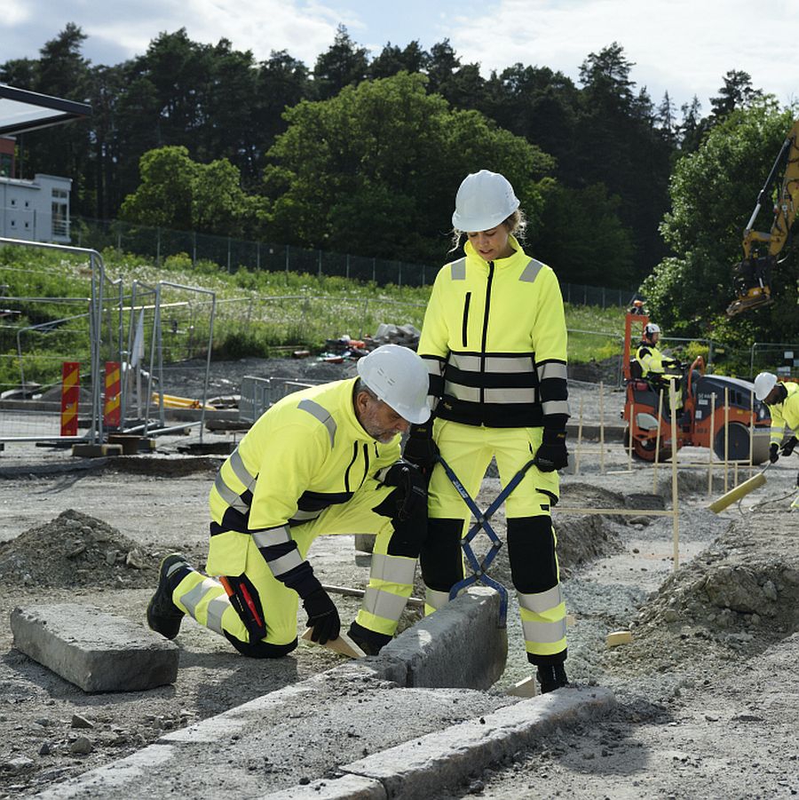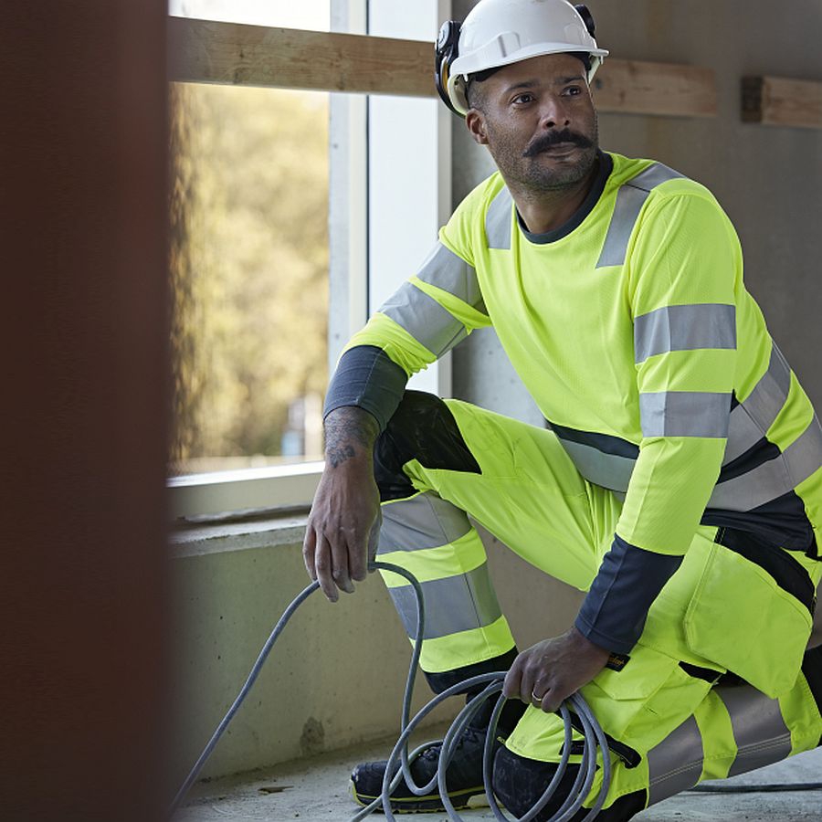 Bequeme Warnschutz-Arbeitshose Klasse 2 mit Slim Fit-Passform für den täglichen Gebrauch. Entwickelt, um bei schlechten Sichtverhältnissen optimalen Arbeitskomfort und Sicherheit zu bieten.