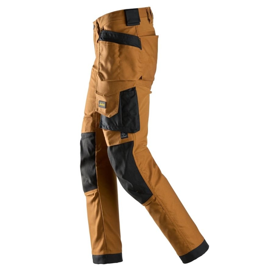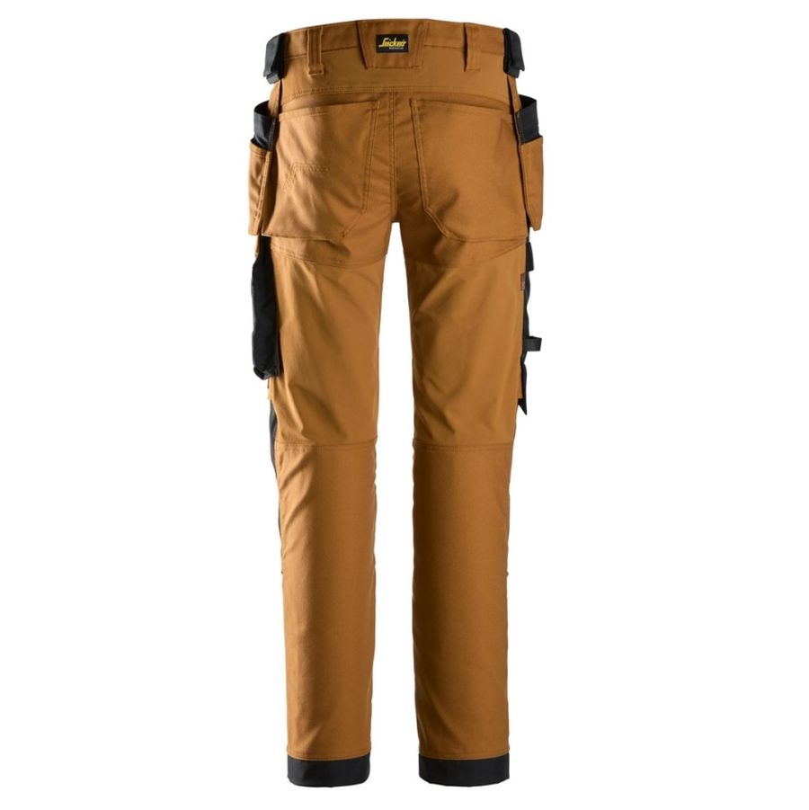 Die Snickers Workwear 6244 AllroundWork Canvas Stretch Arbeitshose mit Holstertaschen ist gemacht für harte Arbeitstage, an denen deine Hose nicht „mitlaufen“, sondern mitarbeiten muss. Das strapazierfähige Canvas-Stretch-Gewebe kombiniert hohe Abriebfestigkeit mit spürbarer Elastizität – ideal für Handwerk, Montage, Baustelle oder Werkstatt. Durch die moderne, schmale Passform sitzt die Snickers 6244 Arbeitshose körpernah, ohne dich einzuengen, und bleibt auch bei viel Bewegung angenehm komfortabel. Für maximale Bewegungsfreiheit setzt Snickers Workwear bei der Artikelnummer 6244 auf ein cleveres Stretch-Konzept: 2-Wege-Stretch im Hauptmaterial und zusätzlich 4-Wege-Stretch-Einsätze genau dort, wo du sie am meisten brauchst – im Schritt, am hinteren Hosenbund und an der Rückseite der Oberschenkel. Das Ergebnis: deutlich weniger Zug beim Knien, Hocken oder Klettern und ein Tragegefühl, das du über den ganzen Tag hinweg merkst. Auch beim Thema Haltbarkeit spielt die Snickers Workwear 6244 AllroundWork ihre Stärken aus: Stark beanspruchte Bereiche sind gezielt mit CORDURA® verstärkt – unter anderem an Holstertaschen, KneeGuard™-Taschen, Zollstocktasche sowie an den Beinabschlüssen. Dazu kommen vorgeformte Beine, die dir in jeder Position mehr Freiheit geben. Dank der funktionellen Holstertaschen und der vielen sicheren Aufbewahrungsmöglichkeiten hast du Werkzeuge, Zubehör und Kleinteile schnell griffbereit – ein echter Vorteil im Alltag.