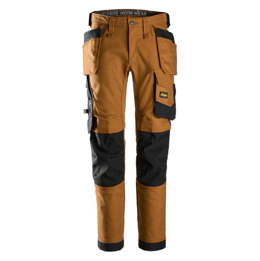 Die Snickers Workwear 6244 AllroundWork Canvas Stretch Arbeitshose mit Holstertaschen ist gemacht für harte Arbeitstage, an denen deine Hose nicht „mitlaufen“, sondern mitarbeiten muss. Das strapazierfähige Canvas-Stretch-Gewebe kombiniert hohe Abriebfestigkeit mit spürbarer Elastizität – ideal für Handwerk, Montage, Baustelle oder Werkstatt. Durch die moderne, schmale Passform sitzt die Snickers 6244 Arbeitshose körpernah, ohne dich einzuengen, und bleibt auch bei viel Bewegung angenehm komfortabel. Für maximale Bewegungsfreiheit setzt Snickers Workwear bei der Artikelnummer 6244 auf ein cleveres Stretch-Konzept: 2-Wege-Stretch im Hauptmaterial und zusätzlich 4-Wege-Stretch-Einsätze genau dort, wo du sie am meisten brauchst – im Schritt, am hinteren Hosenbund und an der Rückseite der Oberschenkel. Das Ergebnis: deutlich weniger Zug beim Knien, Hocken oder Klettern und ein Tragegefühl, das du über den ganzen Tag hinweg merkst. Auch beim Thema Haltbarkeit spielt die Snickers Workwear 6244 AllroundWork ihre Stärken aus: Stark beanspruchte Bereiche sind gezielt mit CORDURA® verstärkt – unter anderem an Holstertaschen, KneeGuard™-Taschen, Zollstocktasche sowie an den Beinabschlüssen. Dazu kommen vorgeformte Beine, die dir in jeder Position mehr Freiheit geben. Dank der funktionellen Holstertaschen und der vielen sicheren Aufbewahrungsmöglichkeiten hast du Werkzeuge, Zubehör und Kleinteile schnell griffbereit – ein echter Vorteil im Alltag.