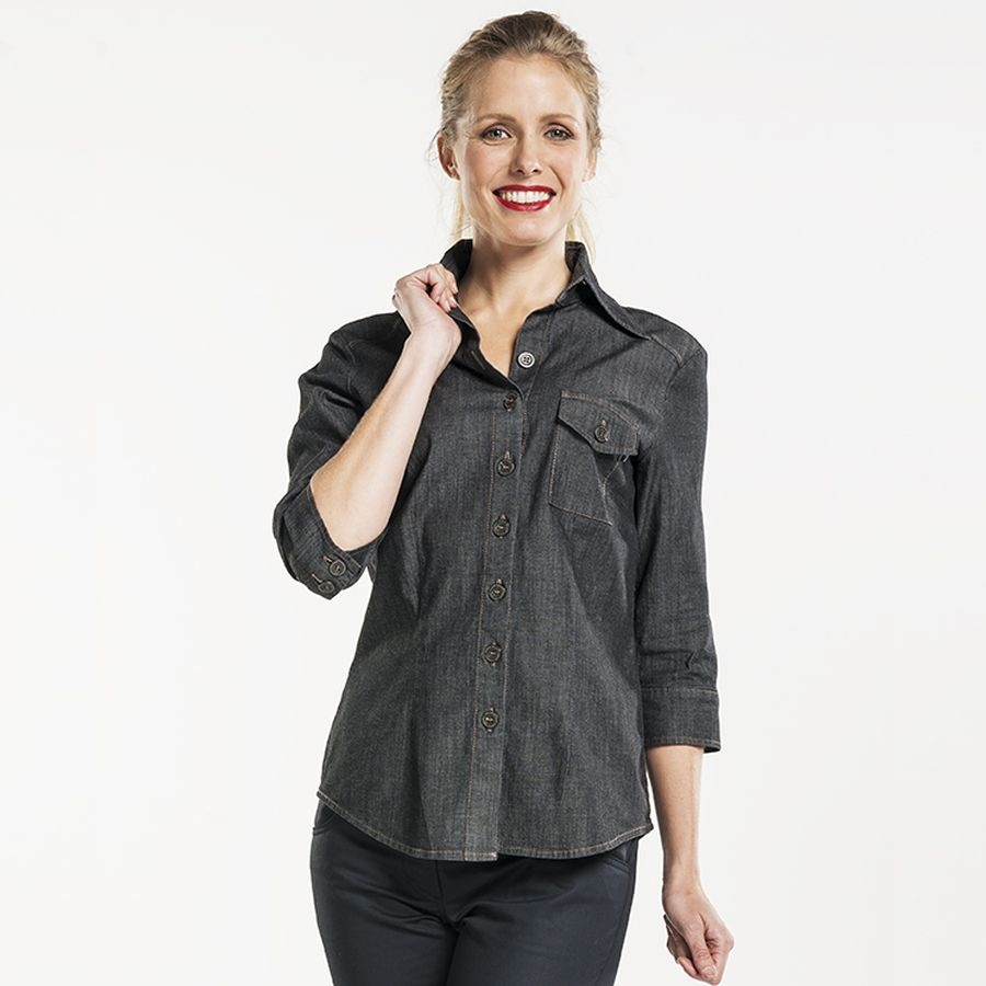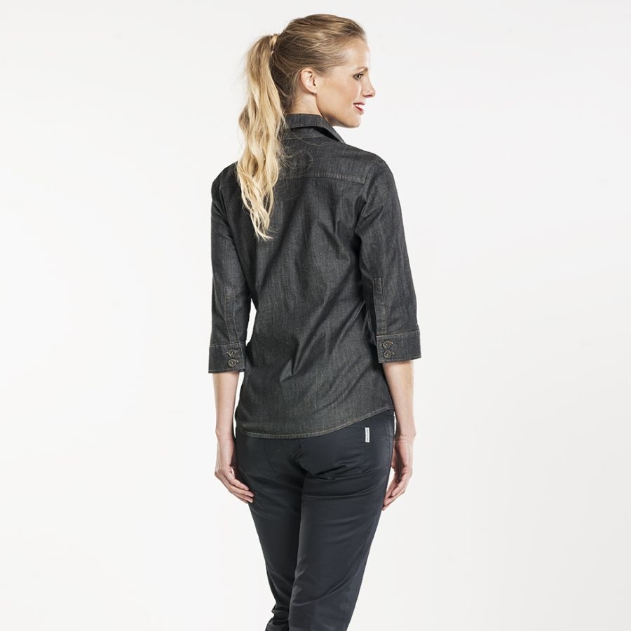 Die Pure Denim Kollektion zeigt Stärke und Charakter … Daher ist sie die perfekte Verschmelzung von Mode und Arbeitskleidung. Richtiger Denim lebt! Häufiges Waschen lässt den Stoff aufleben. Waschen und behandeln Sie ihn ganz nach eigener Vorliebe und schaffen Sie sich auf diese Weise eine ganz eigene Identität. Zeigen Sie Mut zum Kombinieren und finden Sie das Modell, das Ihnen wie auf den Leib geschnitten ist! Die Pure-Denim-Artikel sind nicht für Industriewaschmaschinen geeignet. Alle lieben Denim! Diese taillierte Damenbluse hat eine stylische Passform. Durch das Stretch-Material ist die zeitlose Bluse komfortabel zu tragen. Unter anderem durch die praktischen Dreiviertelärmel perfekt für das Service Personal.