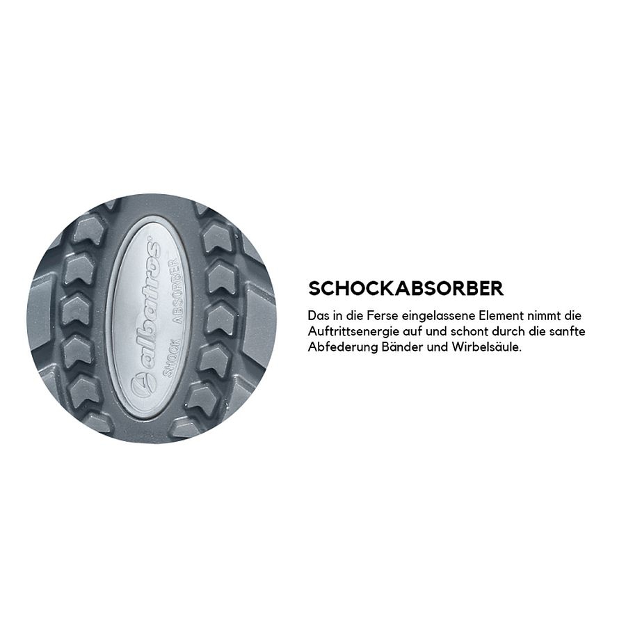 Bewegungsfreiheit, Komfort und optimaler Schutz in vielen Arbeitsbereichen - das bietet die ClearTPU Linie von ALBATROS®. Konzipiert für höchste Belastungen bei extremen äußeren Bedingungen überzeugt diese Linie durch hochwertige, besonders robuste Vollleder und überlegener TPU-Sohlentechnologie. Die Sohle ist eine Verbundlösung aus TPU für die Laufsohle und PU als schockabsorbierende Zwischensohle. Gegenüber reinen PU-Sohlen ist sie leichter, deutlich flexibler und widerstandsfähiger gegen Schnitte, Brüche, Abrieb und Verschleiß. TPU-Sohlen zeichnen sich durch den Scheibenwischer-Effekt aus: der Schuh wischt stehende Nässe vom Boden und erhöht so die Rutschsicherheit. Optisch ansprechend und Qualitätsaussage zugleich ist die Transparenz des TPU-Anteils der Duo-Sohle. Für das Plus an Komfort im Sicherheitsschuh sorgt das atmungsaktive ALBATROS® comfit AIR Fußbett. Es verfügt über schockabsorbierende Erhöhungen im Fersen- und Ballenbereich sowie eine Längsgewölbeunterstützung. Dadurch wird die natürliche Haltung des Fußes im Schuh optimiert und die Muskulatur beim Gehen stimuliert. Die rutschfeste Textiloberfläche ist geruchsresistent, feuchtigkeitsaufnehmend und waschbar bei 30°C.