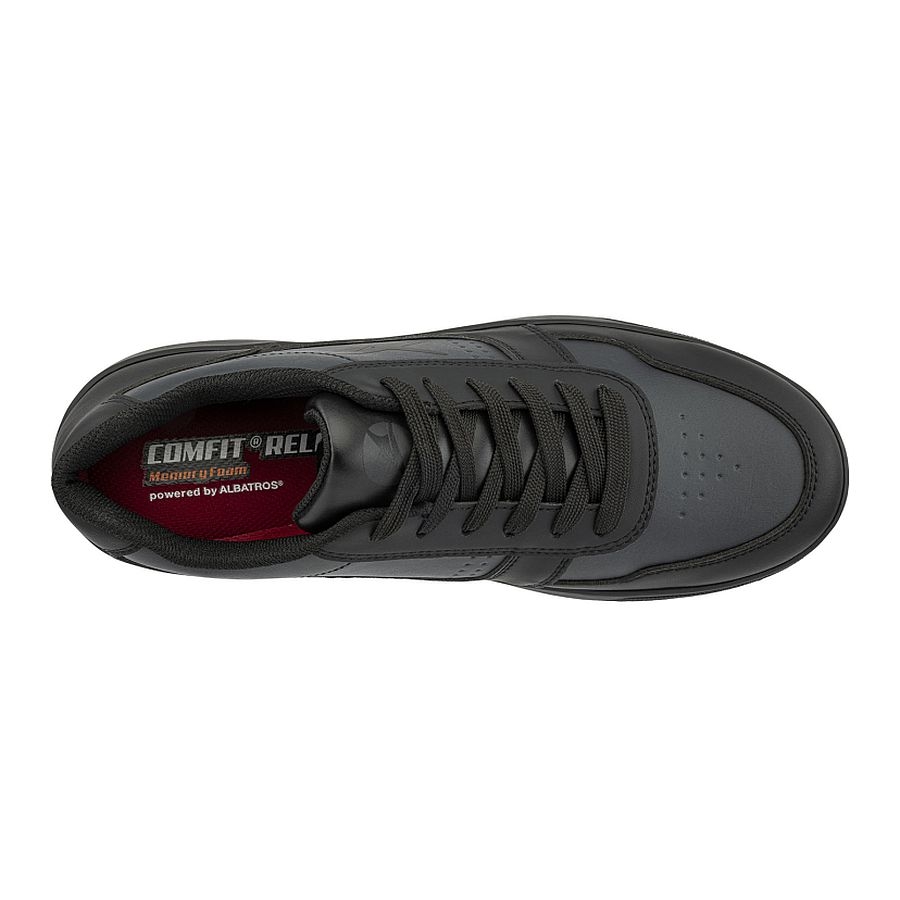 Der Albatros SQUAD ST BLK LOW O2 ist der ideale Berufsschuh für anspruchsvolle Einsätze in der Gastronomie, im Service und im Alltag. Der vielseitige Herren‑ und Damenschuh vereint modernes, sportlich‑elegantes Sneaker‑Design mit funktionaler Arbeitsschutztechnik. Das metallfreie Modell setzt dabei auf bewährte O2‑Normen nach EN ISO 20347 mit GRIPPAZ® Traction‑Laufsohle, kombiniert mit höchstem Tragekomfort für lange Arbeitstage. Gefertigt aus strapazierfähiger, wasserabweisender Mikrofaser, trotzt der SQUAD Schmutz, Reinigungsmitteln, tierischen Fetten und Säuren – perfekt für Küchen, Bars und Gemeinschaftsräume. Das atmungsaktive Innenfutter sorgt für ein angenehmes Schuhklima, während das comfit® RELAX Memory‑Foam‑Fußbett Druckspitzen dämpft und ermüdungsfreies Gehen fördert. Besonderes Highlight: die 360°‑Basketball‑inspirierten Rutschhemmung bietet exzellenten Halt und Flexibilität bei jeder Bewegung.