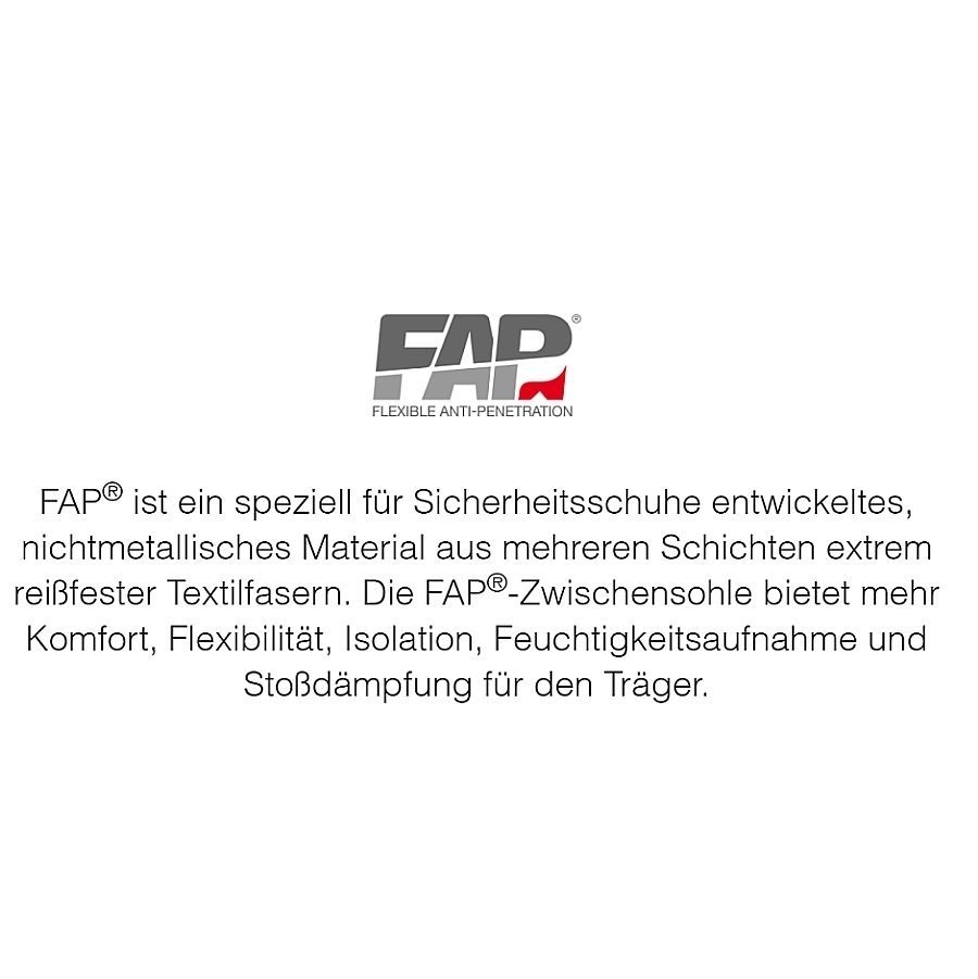 - Schutz: Fiberglaskappe, metallfreier, flexibler FAP®-Durchtrittschutz