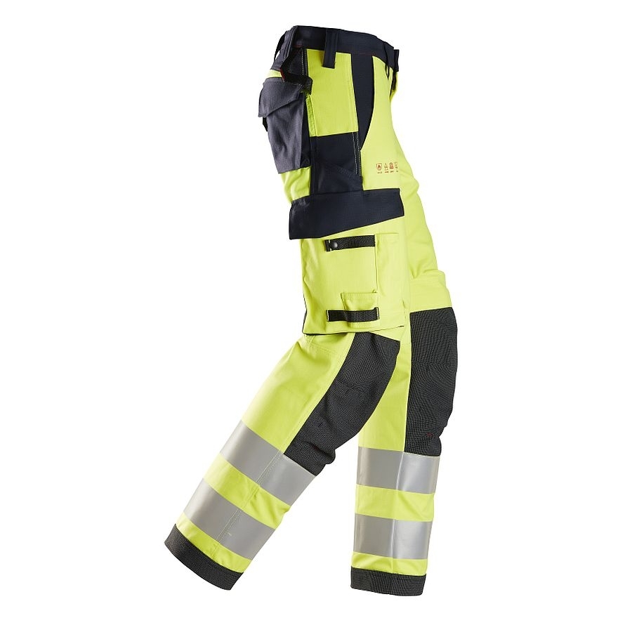 Strapazierfähige antistatische Arbeitsschutzhose mit Hitze-, Flamm- und Lichtbogenschutz in Damen-Passform. Aufgeschweißte Reflexbänder um die Hosenbeine für erhöhte Sichtbarkeit, ergonomisch geschnittene Beine und zertifizierte KneeGuard®-Knietaschen für hervorragenden Schutz, Tragekomfort und Strapazierfähigkeit. Stretchpartie im Rücken für mehr Tragekomfort. Alle Taschen haben DuPont™-Kevlar®-Faserverstärkung und sitzen auf beiden Seiten, sind also für Links- und Rechtshänder geeignet. Zertifiziert nach EN 14404, 1149, 13034, 11611, 11612, 20471, IEC 61482, Klasse 2.