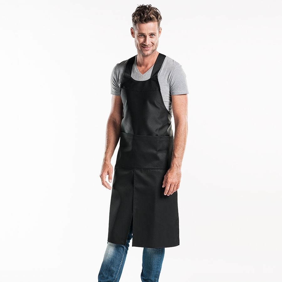 Die robuste Latzschürze Cross 688 überzeugt durch ihre Praxistauglichkeit und eignet sich hervorragend für Service Personal. Die Bänder werden im Rücken gekreuzt und lassen sich auf jede gewünschte Größe verstellen. Die Latzschürze besitzt vier praktische Taschen und ist vorne in der Mitte mit einem Schlitz versehen, was zusätzliche Bewegungsfreiheit bietet. Die Cross besteht aus wasserabweisendem Material.