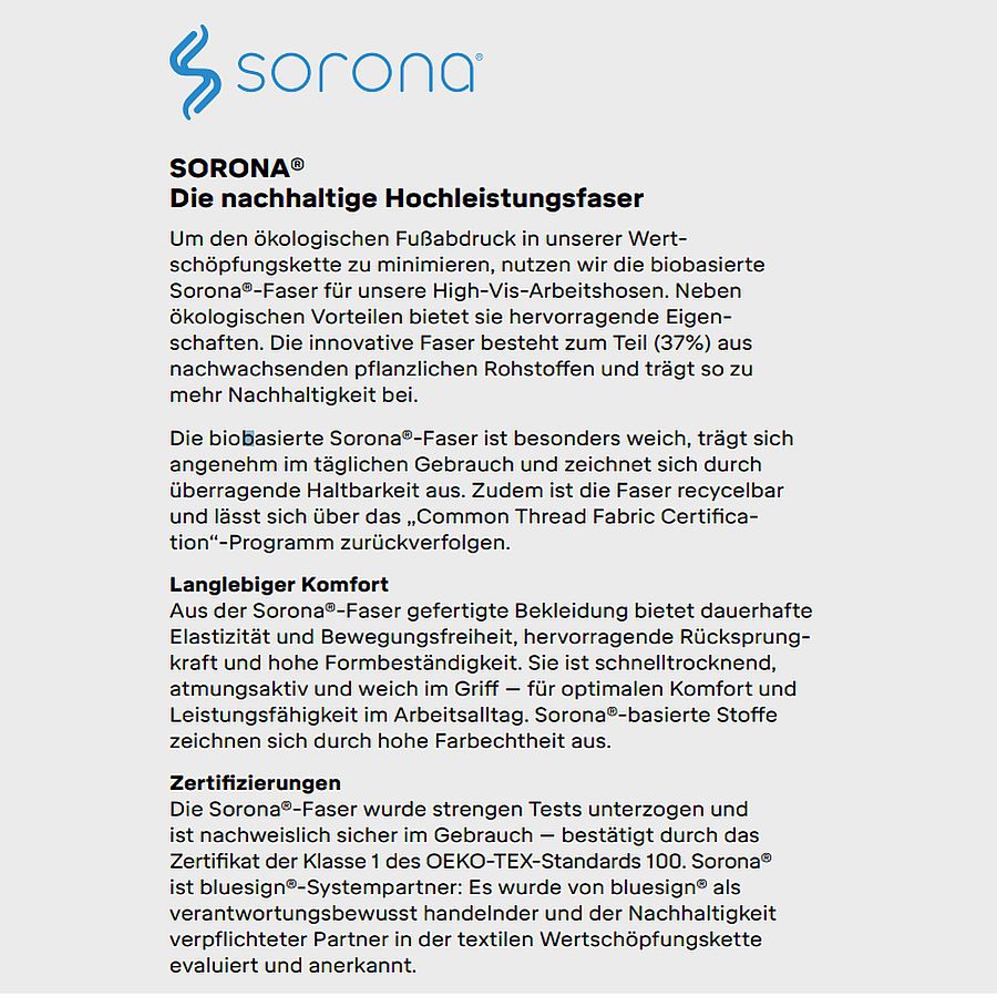 | Produkteigenschaften: | Corduraverstärkung, Holstertaschen, Knieschutz, Warnschutz, figurbetont |