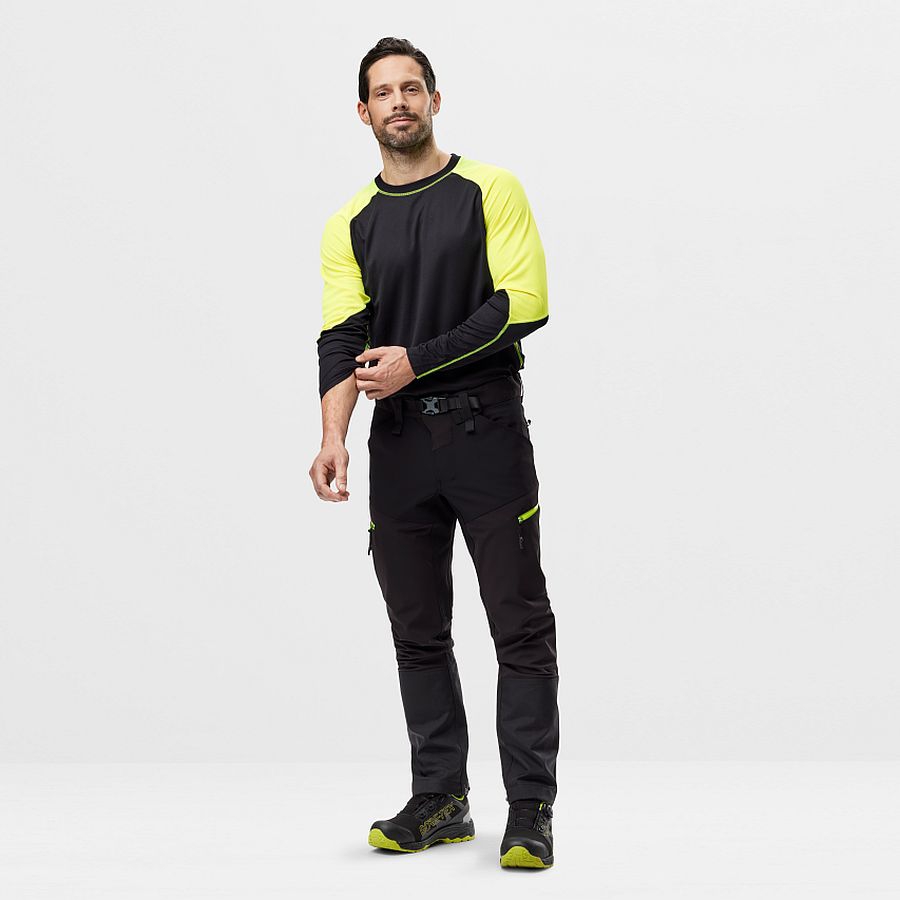 Entdecken Sie die Performance und Funktionalität der Snickers 6948 Softshellhose – eine Meisterleistung aus 4-Wege-Softshell-Gewebe von Schoeller® für höchste Ansprüche. Das innovative Design umfasst 4-Wege-Stretch-Kontrastmaterial aus Polyamid-Doppelgewebe mit einem beeindruckenden Elasthananteil, das uneingeschränkte Bewegungsfreiheit und Komfort gewährleistet. Die unteren Beinabschnitte sind mit wasserdichtem dreilagigem CORDURA® ausgestattet, was zuverlässigen Schutz und Langlebigkeit garantiert. Die wasserdichten Reißverschlüsse an den Unterschenkeln und Taschen sorgen dafür, dass Ihre Wertgegenstände sicher und trocken bleiben, selbst bei widrigen Witterungsbedingungen. Ein integrierter Gürtel mit Duraflex®-Schnalle bietet eine individuelle Passform und zusätzlichen Halt. Darüber hinaus verfügt diese Softshellhose über eine praktische herausnehmbare ID-Karte, um Ihre Identifikation stets griffbereit zu haben. Erleben Sie unübertroffene Leistungsfähigkeit mit der Snickers 6948 Softshellhose