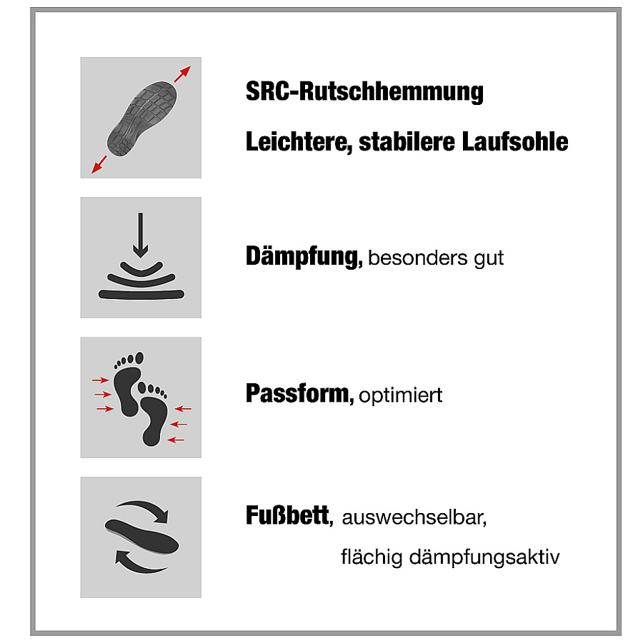 - Auswechselbare Active Comfort Einlegesohle.