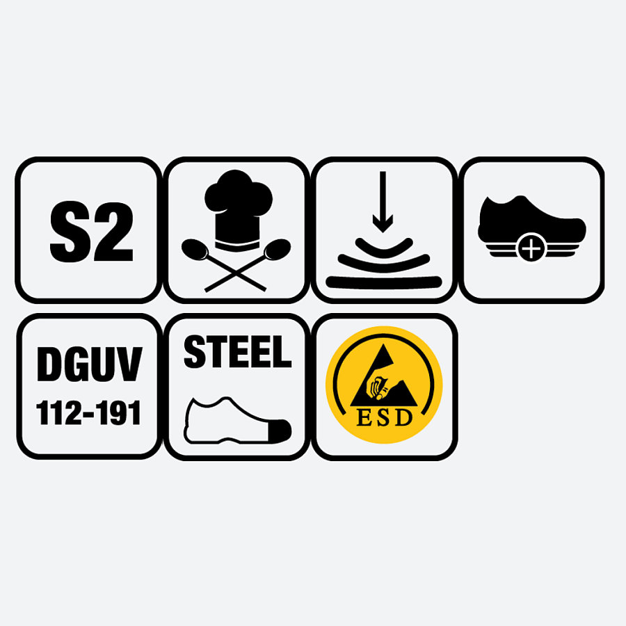 | Zertifizierung: | ESD DIN EN 61340, Sicherheitsschuh DIN EN 20345 S1 |