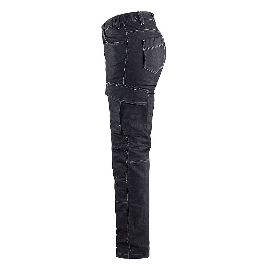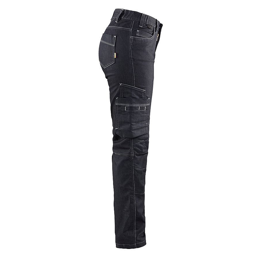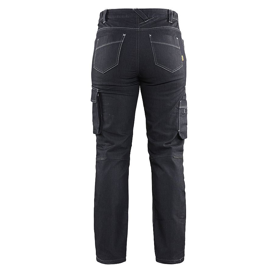 Eine Service Hose für Damen, die aus robustem CORDURA® Denim Stretch besteht. Die Hose hat eine elastische Taille, ist kratzfrei und der Stoff ist stark und weich. Sie hat clever platzierte Taschen, vorgeformte Beine für besseren Komfort und schwarze Reflexdetails für bessere Sichtbarkeit. Das Kleidungsstück kann für ein weicheres Gefühl gewaschen werden.
