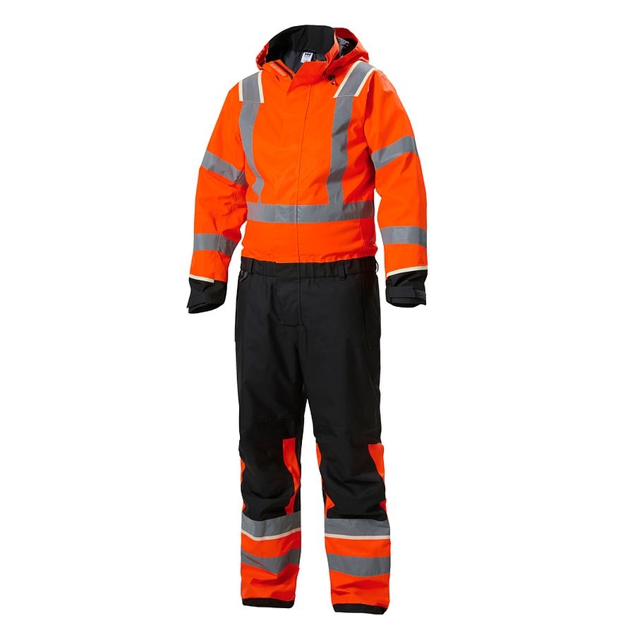 Der UC-ME Winter Suit 71555 von Helly Hansen Workwear ist die ideale Lösung für Profis, die auch bei extremen Wetterbedingungen nicht auf Sicherheit, Komfort und Funktionalität verzichten wollen. Dieser hochwertige Winteranzug wurde speziell für den harten Arbeitsalltag im Freien entwickelt und überzeugt durch seine durchdachte Konstruktion, geprüfte Sicherheitsstandards und robuste Materialien. Mit seinen zertifizierten Schutzfunktionen nach EN ISO 20471 Klasse 3, EN 343:2019 Klasse 3,1 sowie EN 342:2017, bietet der UC-ME Winter Suit 71555 zuverlässigen Kälte-, Nässe- und Sichtbarkeitsschutz. Die Kombination aus wind- und wasserdichtem Material (10.000 mm Wassersäule / 10.000 g/m²/24h Atmungsaktivität) sorgt dafür, dass Sie bei jeder Witterung trocken und warm bleiben. Der Anzug verfügt über eine abnehmbare, helmkompatible Kapuze, die sich sowohl vertikal als auch horizontal verstellen lässt – ideal für individuelle Anpassung und optimalen Rundumschutz. Dank des gepolsterten Kragens mit Innenfutter aus gebürstetem Polyester bleibt der Komfort auch bei langen Einsätzen erhalten. Ein besonderes Highlight ist der 2-Wege YKK®-Frontreißverschluss mit Kinnschutz, ergänzt durch eine praktische Napoleontasche, die den Zugriff auf wichtige Utensilien erlaubt, ohne den Anzug vollständig zu öffnen. Für zusätzliche Bewegungsfreiheit sorgen verstärkte Ärmel, verstellbare Bündchen, eine elastische Taille und Hosenträger-Kompatibilität. Die Beinpartie ist mit einem kniehohen Stiefelreißverschluss ausgestattet, der über einen Windschutz mit Verschluss verfügt – ideal für schnelles An- und Ausziehen. Knieverstärkungen bieten auch bei knienden Tätigkeiten optimalen Schutz und Tragekomfort.
