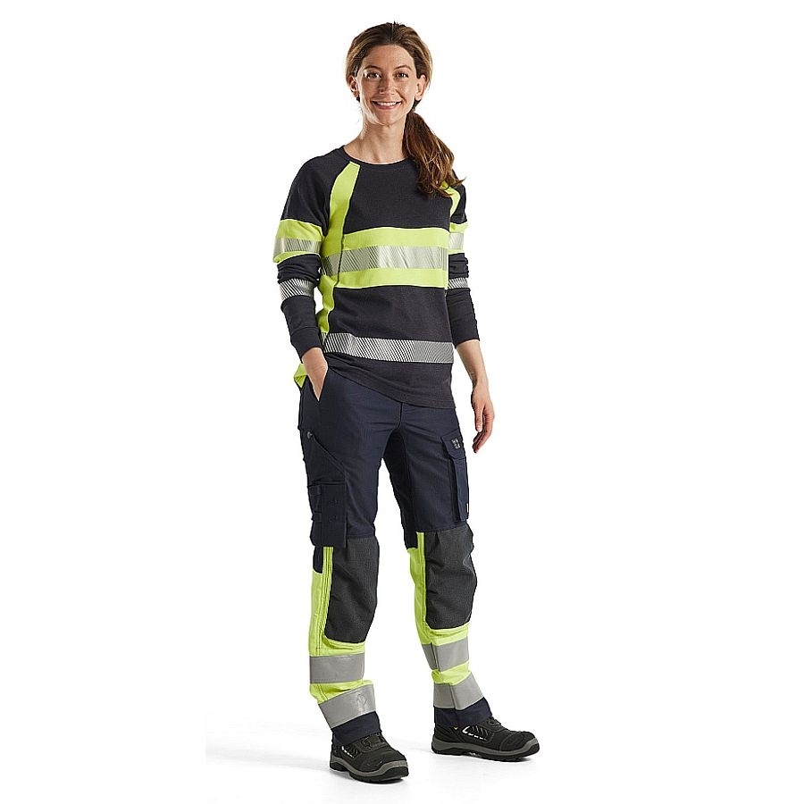 Die ideale Arbeitshose im Damenschnitt mit hohem Komfort für alle, die in rauen Umgebungen arbeiten. Die Hose ist mit intelligenten Details wie Stretch-Einsätzen für bessere Bewegungsfreiheit und Flexibilität ausgestattet. Der Stoff ist inhärent mit hoher Haltbarkeit. CORDURA®/Kevlar®/Protal® verstärkte Knie. Die Hose besitzt eine Zollstock- und Messertasche und eine Beintasche mit Platz für ein Telefon. Besonders gut geeignet für, zum Beispiel, Elektriker und ähnliche Berufsfelder. Zertifiziert nach EN ISO 20471 Klasse 1; EN 1149-5; EN ISO 11612 A1, B1, C1, F1 und IEC 61482-2 APC 1. Arc rating: 10.7 cal/cm² (gilt für das Stretch-Material). EN 14404: 2004 + A1: 2010 zusammen mit Kniepolster 4027 und 4057.