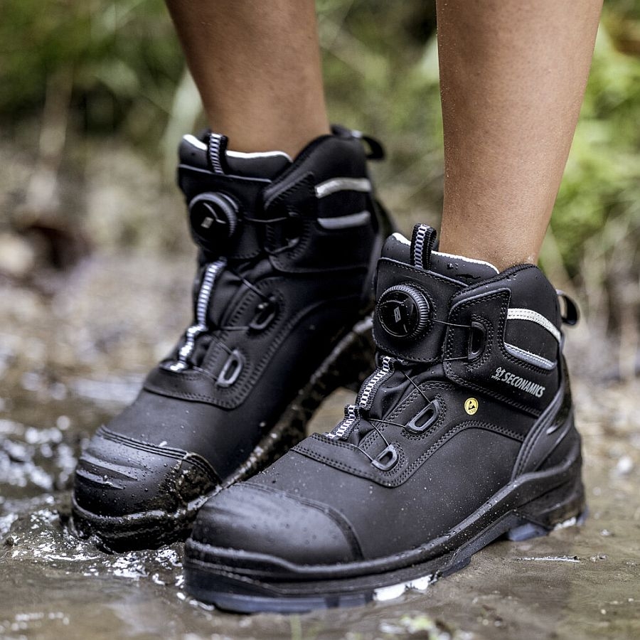 Für sicheres, schnelles An- und Ausziehen sorgt der bewährte Drehverschluss 712 // FIT SYSTEM, der nicht nur Zeit spart, sondern auch für perfekten Halt und individuellen Sitz sorgt. Im Inneren bieten die ergonomische COMFORT STEP Einlegesohle sowie die angenehme Polsterung am Schaft optimalen Komfort – selbst bei langen Arbeitstagen. Dank Weite 11 (MID FIT) eignet sich der Schuh auch hervorragend für breitere Füße.