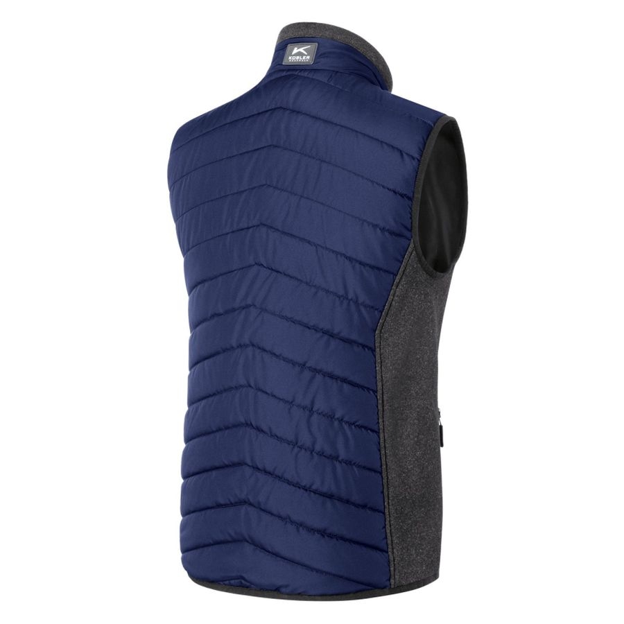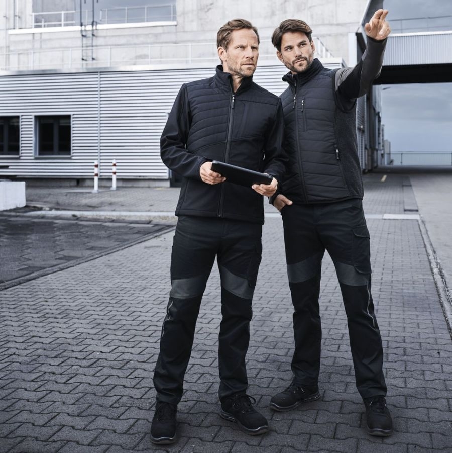 Wenn du eine Weste suchst, die Wärme, Bewegungsfreiheit und Wettertauglichkeit clever kombiniert, ist die Hybridweste von KÜBLER aus der Kollektion KÜBLER WEATHER genau richtig. Die KÜBLER Hybridweste 7342 5201-4448 setzt auf einen modernen körperbetonten Schnitt und verbindet zwei Welten: Strickfleece für angenehmen Komfort und Stepp-Optik für zusätzliche Isolation – ideal für Übergangszeiten, kühle Morgenstunden oder Arbeiten, bei denen eine Jacke zu warm wäre. Besonders praktisch im Arbeitsalltag ist die durchdachte Taschenausstattung: Zwei Seitentaschen mit Reißverschluss sichern Handy & Co., während die Napoleontasche (links) schnellen Zugriff auf wichtige Kleinteile bietet. Auf der rechten Seite wartet eine große Innentasche, in der sogar Tablets bis 10" Platz finden – perfekt für Service, Logistik, Montage oder Baustellenkoordination. Der sichtbare Frontreißverschluss ist zusätzlich mit Kinn- und Windschutzblende ausgestattet: Das schützt vor Zugluft und verhindert unangenehmes Scheuern am Hals. Für extra Tragekomfort sorgt der hochschließende Kragen mit weichem Strickfleece im Innenkragen. Damit sitzt die Weste angenehm, auch wenn du sie den ganzen Tag trägst. Armloch und Saum sind mit elastischem Band eingefasst – das hält die Passform stabil und reduziert Wärmeverlust. Und weil Arbeitskleidung robust sein muss, sind alle Reißverschlusstaschen mit Zippergarage und nach innen gedrehter Spirale ausgestattet – weniger Schmutz, weniger Kratzer, mehr Langlebigkeit. Die Weste ist OEKO-TEX® zertifiziert.