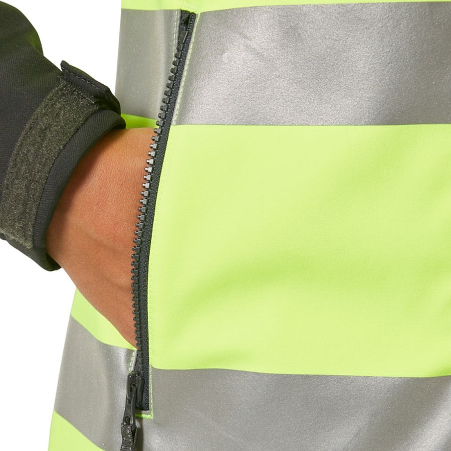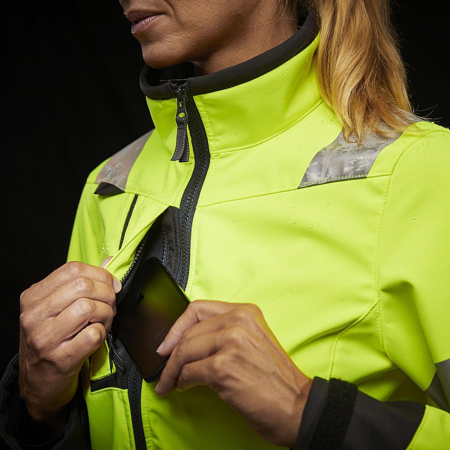 Die von Frauen entwickelte und getestete Luna Hi Vis Softshelljacke 74098 verfügt über eine frauenspezifische Passform und strategisch platzierte Taschen für optimalen Tragekomfort und Sichtbarkeit während der Arbeit.