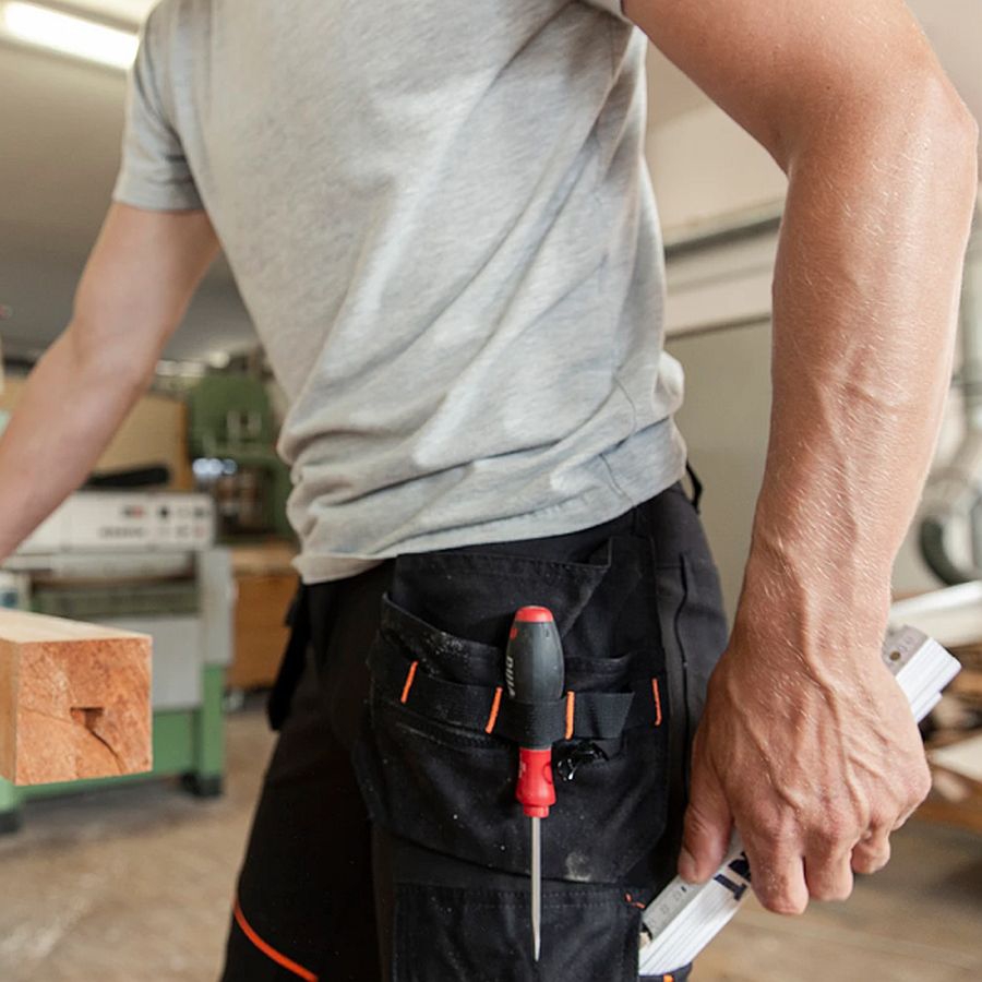 Arbeitshosen: Robuste Arbeitshosen aus widerstandsfähigem Material, oft mit Verstärkungen an den Knien und zusätzlichen Taschen für Werkzeuge. Die Hosen bieten Bewegungsfreiheit und sind ideal für Handwerker und Bauarbeiter.