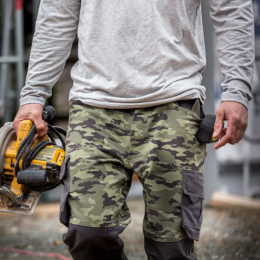 Arbeitshosen: Robuste Arbeitshosen aus widerstandsfähigem Material, oft mit Verstärkungen an den Knien und zusätzlichen Taschen für Werkzeuge. Die Hosen bieten Bewegungsfreiheit und sind ideal für Handwerker und Bauarbeiter.