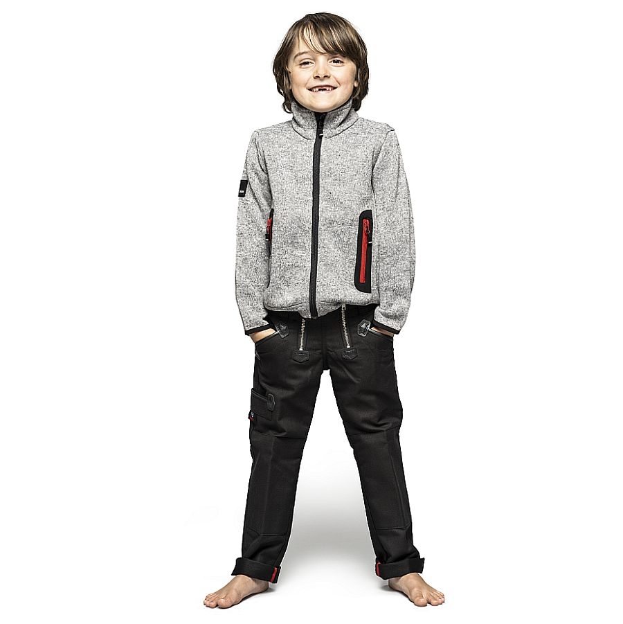 Extrem leichte und anschmiegsame Strickfleece Kinderjacke Mats von FHB. Eine Strick-Fleece-Jacke für das ganze Jahr. Sie bietet genug Stauraum in den zwei geräumigen Reißverschlussseitentaschen oder in den 2 Innentaschen und bietet durch den Kontrast der Taschenreißverschlüsse einen netten Hingucker. Der robuste YKK Frontreißverschluss, in schwarz gehalten rundet das ganze praktisch und chic ab.