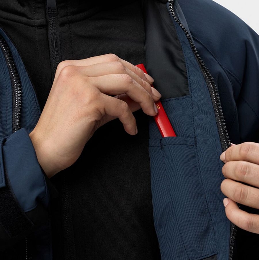 - Reflektierende Details an Ärmeln und Taschen für bessere Sichtbarkeit.