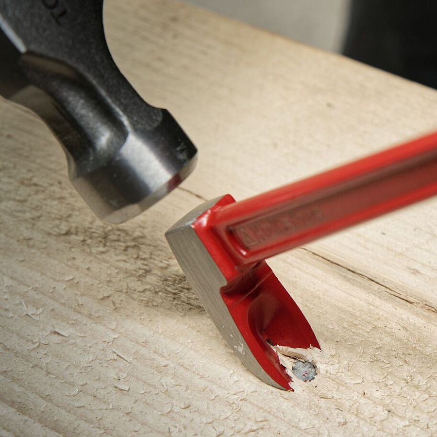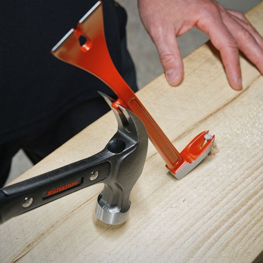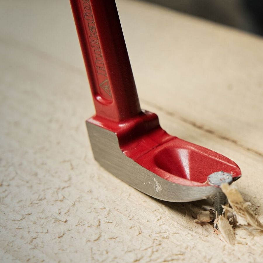 Ein besonderes Highlight ist der integrierte Anhaltepunkt, der in Kombination mit einem Zimmermannshammer als Kupplungsstutzen verwendet werden kann. So lässt sich die Hebelwirkung verstärken – perfekt für das Entfernen größerer Nägel oder besonders festsitzender Verbindungen. Dank seiner kompakten Bauweise lässt sich der Hultafors 409/10’’ bequem im Werkzeuggürtel mitführen und ist jederzeit einsatzbereit.