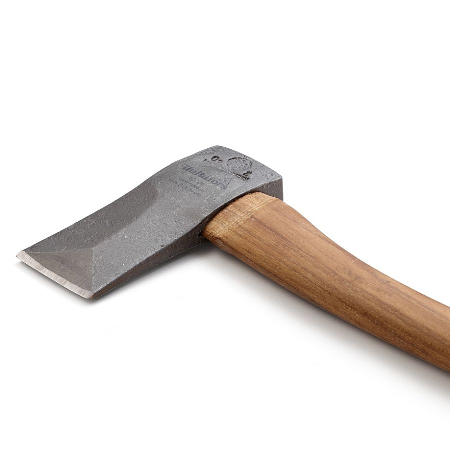 Spaltaxt mit sandgestrahltem und klar lackiertem Schmiedekopf. Geeignet für einfachere Spaltarbeiten, z. B. von Ofenholz. Geschwungener Stiel aus Hickory.