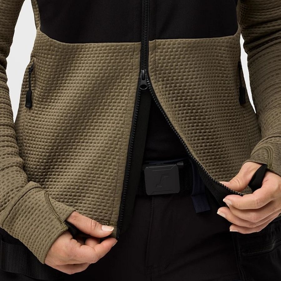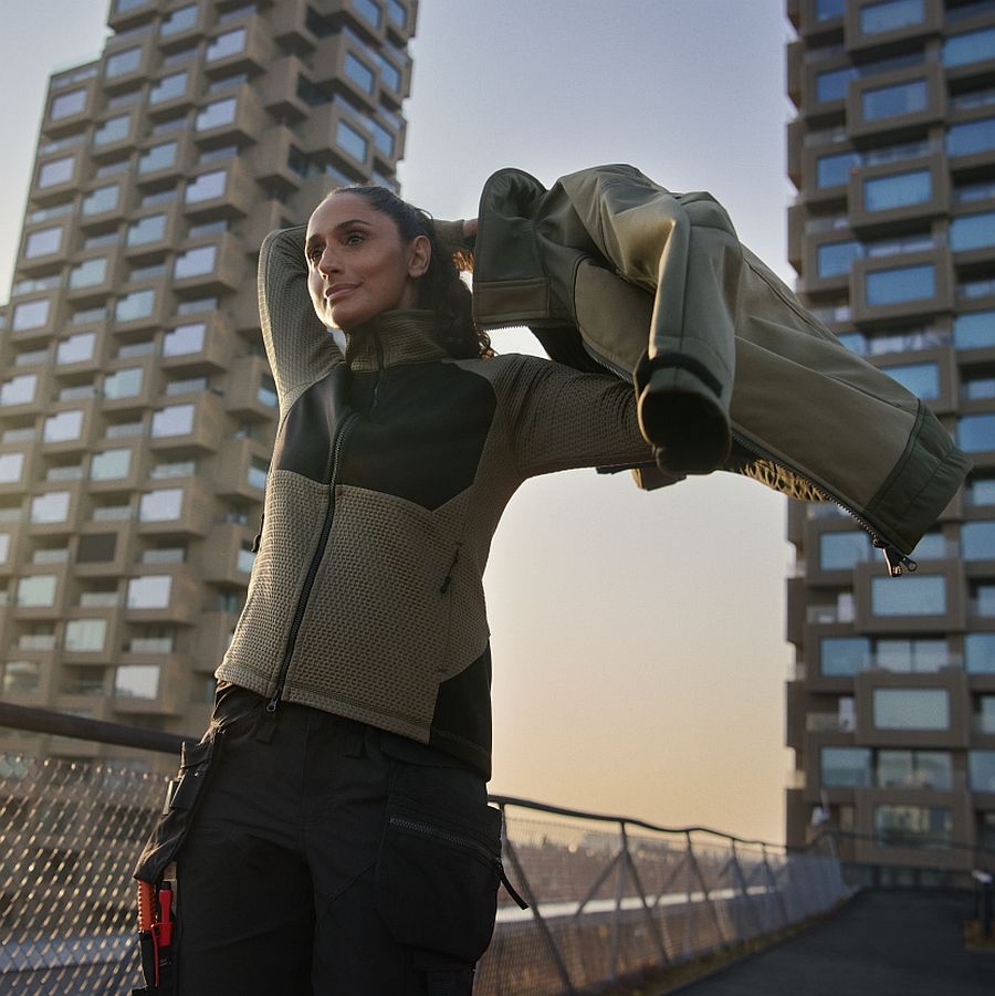 Die Snickers Workwear FlexiWork Midlayer-Jacke für Damen (Artikelnummer 8407) ist die ideale Wahl für aktive Frauen, die bei der Arbeit weder auf Komfort noch auf Stil verzichten möchten. Diese Jacke kombiniert innovative Materialien mit durchdachtem Design, um den Anforderungen eines dynamischen Arbeitsalltags gerecht zu werden. Gefertigt aus einem doppellagigen Thermogewebe, speichert die Jacke durch eingeschlossene Luft effektiv Wärme und bietet somit ein hervorragendes Verhältnis von Wärme zu Gewicht. Die windabweisenden Softshell-Einsätze im Brustbereich schützen zusätzlich vor kaltem Wind, während die Raglanärmel mit Daumenlöchern für optimale Bewegungsfreiheit und Komfort sorgen. Der 2-Wege-Frontreißverschluss ermöglicht einen schnellen Zugriff auf Werkzeuge, und die zahlreichen Taschen, darunter zwei geräumige Innentaschen, bieten ausreichend Stauraum für persönliche Gegenstände. Das klare Design der Jacke bietet zudem Platz für Firmenlogos, was sie besonders attraktiv für Unternehmen macht, die Wert auf ein einheitliches Erscheinungsbild legen.