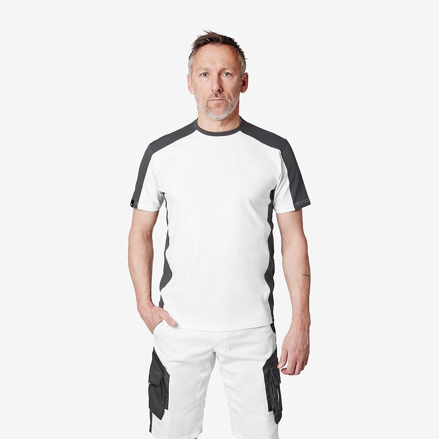 Extrem robustes FHB T-Shirt aus 100% Ringspinn-Baumwolle Single-Jersey mit 210 g/m². Das stabile Baumwollgewebe und die Elasthanverstärkung am Rundhalsausschnitt sorgen für eine hohe Formstabilität und eine hervorragende Haltbarkeit.