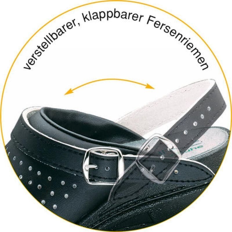 Leichter und bequemer Abeba Clog - das Multitalent mit feststehendem Fersenriemen. Die rutschemmende Sohle sorgt für einen sicheren Halt auch bei schwierigen Bodenverhältnissen.