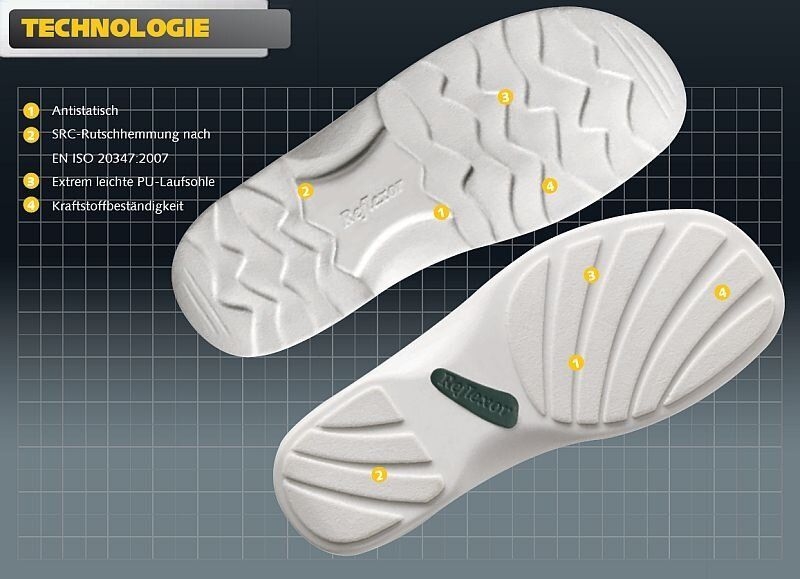 Abeba REFLEXOR® Berufsschuhe - das Schuhwerk für anspruchsvolle Individualisten. Das REFLEXOR® Massage Aktiv-Fußbett stimmuliert über Noppen gezielt die Fußreflexzonen und wirkt dadurch anregend und fördert die Durchblutung. Die orthopädische Bettung ist eine Wohltat für Ihre Füße und wirkt dem Stress entgegen.